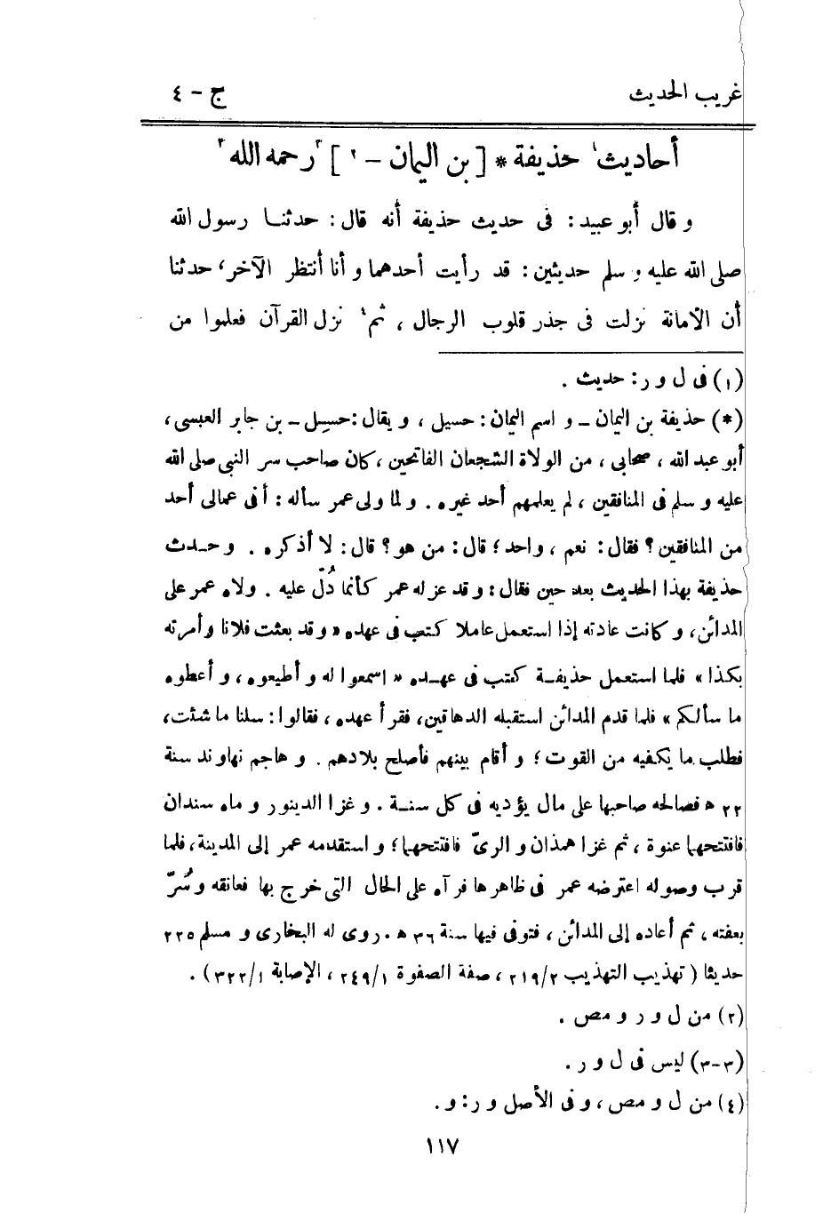 أَحَادِيث حُذَيْفَة الْيَمَان -] رَحمَه الله