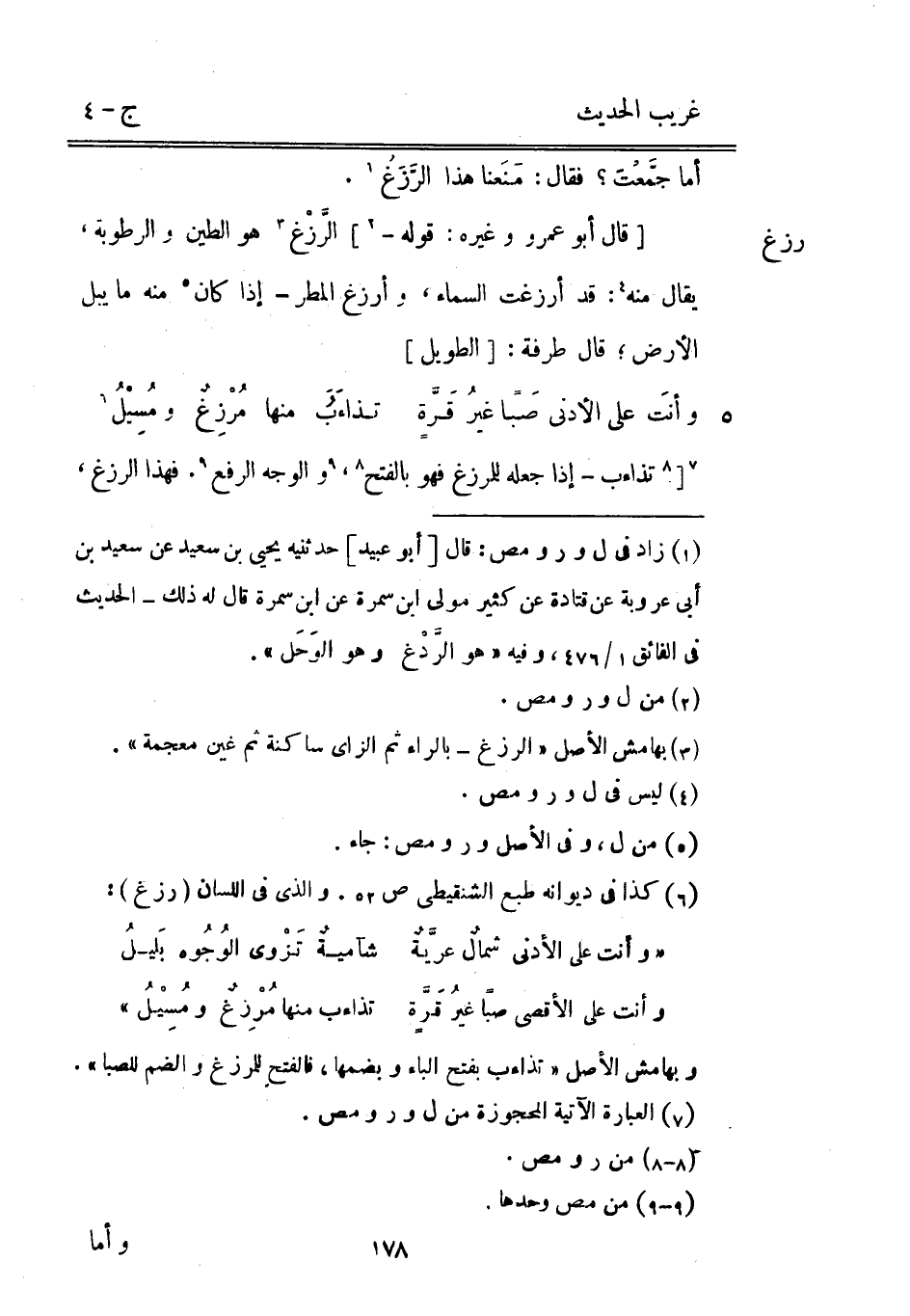 أما جَمَّعْتَ فَقَالَ: مَنَعنا هَذَا الرَّزَغُ. [قَالَ أَبُو عَمْرو وَغَيره: قَوْله -] الرَّزْغ هُوَ الطين والرطوبة يُقَال مِنْهُ: قد أرزغت السَّمَاء وأرزغ الْمَطَر إِذا كَانَ مِنْهُ مَا يبل الأَرْض قَالَ طرفَة: [الطَّوِيل]