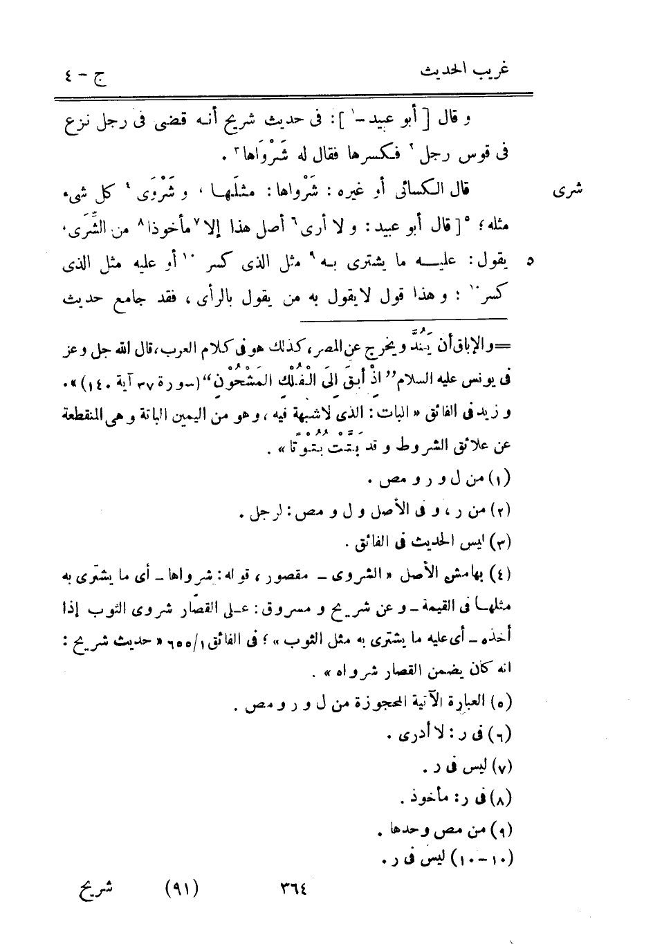 بن [قَالَ أَبُو عُبَيْدٍ: وَلَا أرى أصل هَذَا إِلَّا مأخوذا من الشِّرَى يَقُول: عَلَيْهِ مَا يَشْتَرِي بِهِ مثل الَّذِي كسر أَو عَلَيْهِ مثل الَّذِي كسر وَهَذَا قَول لَا يَقُول بِهِ من يَقُول بِالرَّأْيِ فقد جَامع حَدِيث