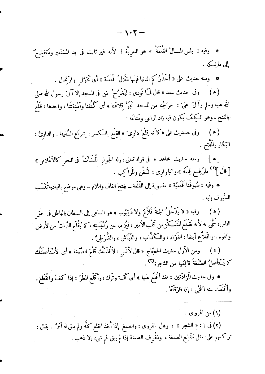 (2) في ا: «الشجر» : وقال الهروي: والصمغ إذا أُخذ انقلع كلُّه ولم يبق له أثرٌ. يقال: تركتهم على مثل مَقْلِع الصمغة، ومَقْرِف الصمغة إذا لم يبق لهم شيءٌ إلا ذهب.