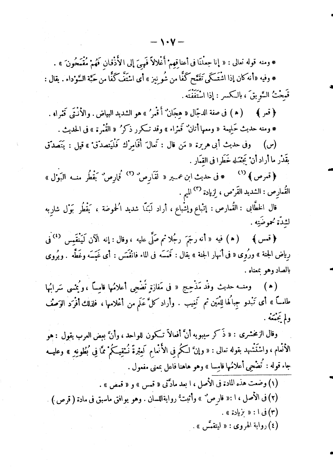 (1) وضعت هذه المادة في الأصل، ابعد مادَّتي «قمس» و «قمص» .