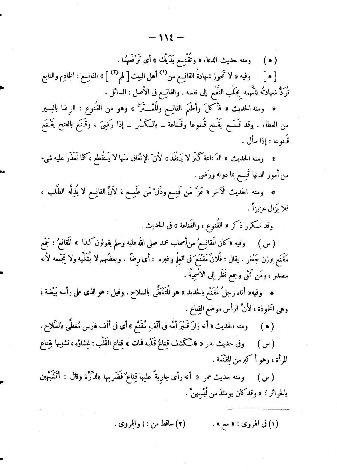 [هـ] وَفِيهِ «لَا تَجوز شهادةُ القانِع مِنْ «1» أَهْلِ الْبَيْتِ [لَهُمْ «2» ] » القانِع: الخادِم وَالتَّابِعُ تُرَدُّ شهادتُه للتُّهمة بِجَلْب النَّفْع إِلَى نَفْسِهِ. والقانِع فِي الْأَصْلِ: السَّائِلُ.