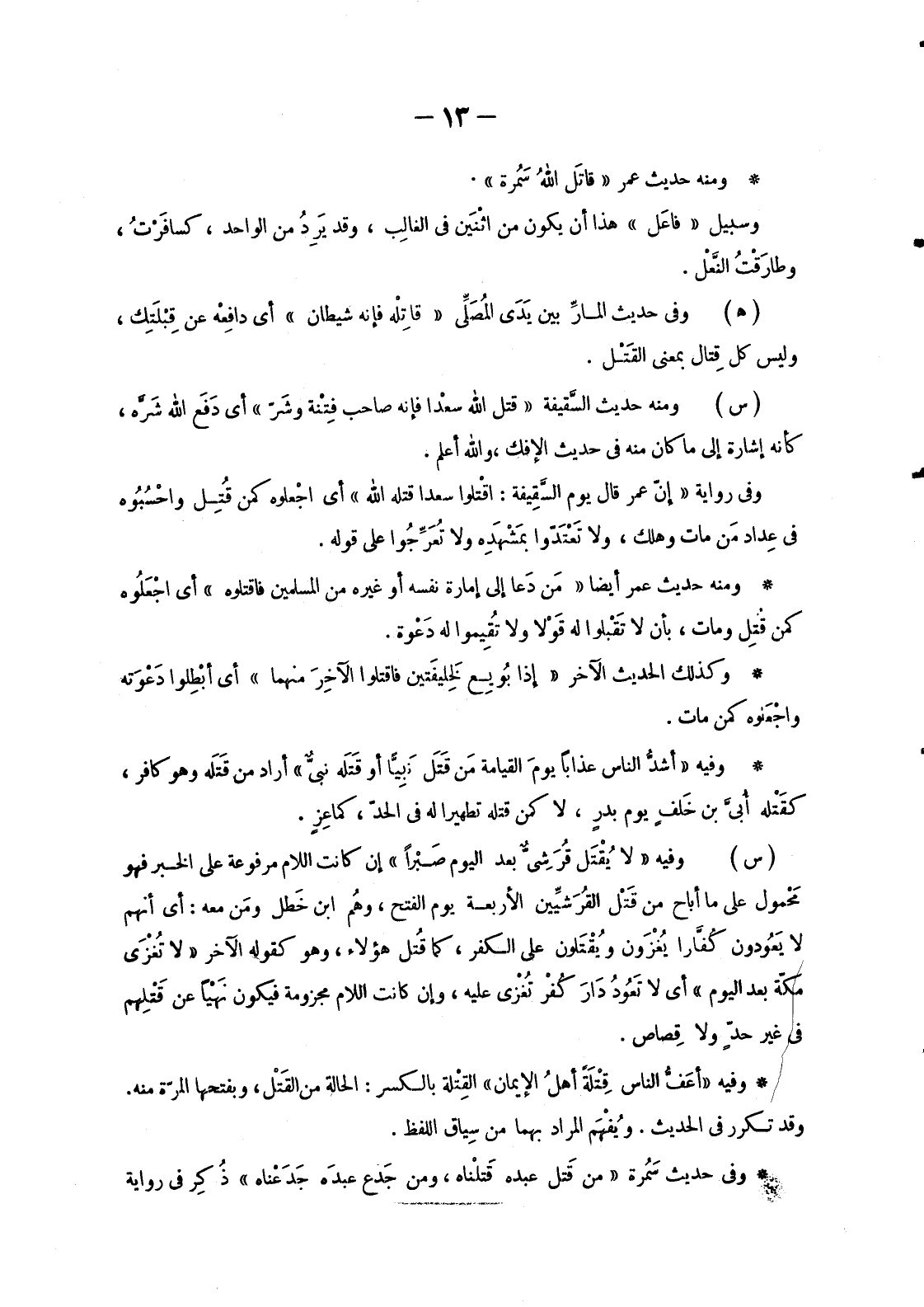 وَفِيهِ «أشدُّ النَّاسِ عَذَابًا يومَ الْقِيَامَةِ مَن قَتَلَ نَبِيَّا أَوْ قَتَلَه نبيٌّ» أَرَادَ مَنْ قَتَلَه وَهُوَ كَافِرٌ، كقَتْله أُبَيَّ بْنَ خَلفٍ يَوْمَ بدرٍ، لَا كَمَنْ قَتَلَه تَطْهِيرًا لَهُ فِي الْحَدِّ، كماعِزٍ.