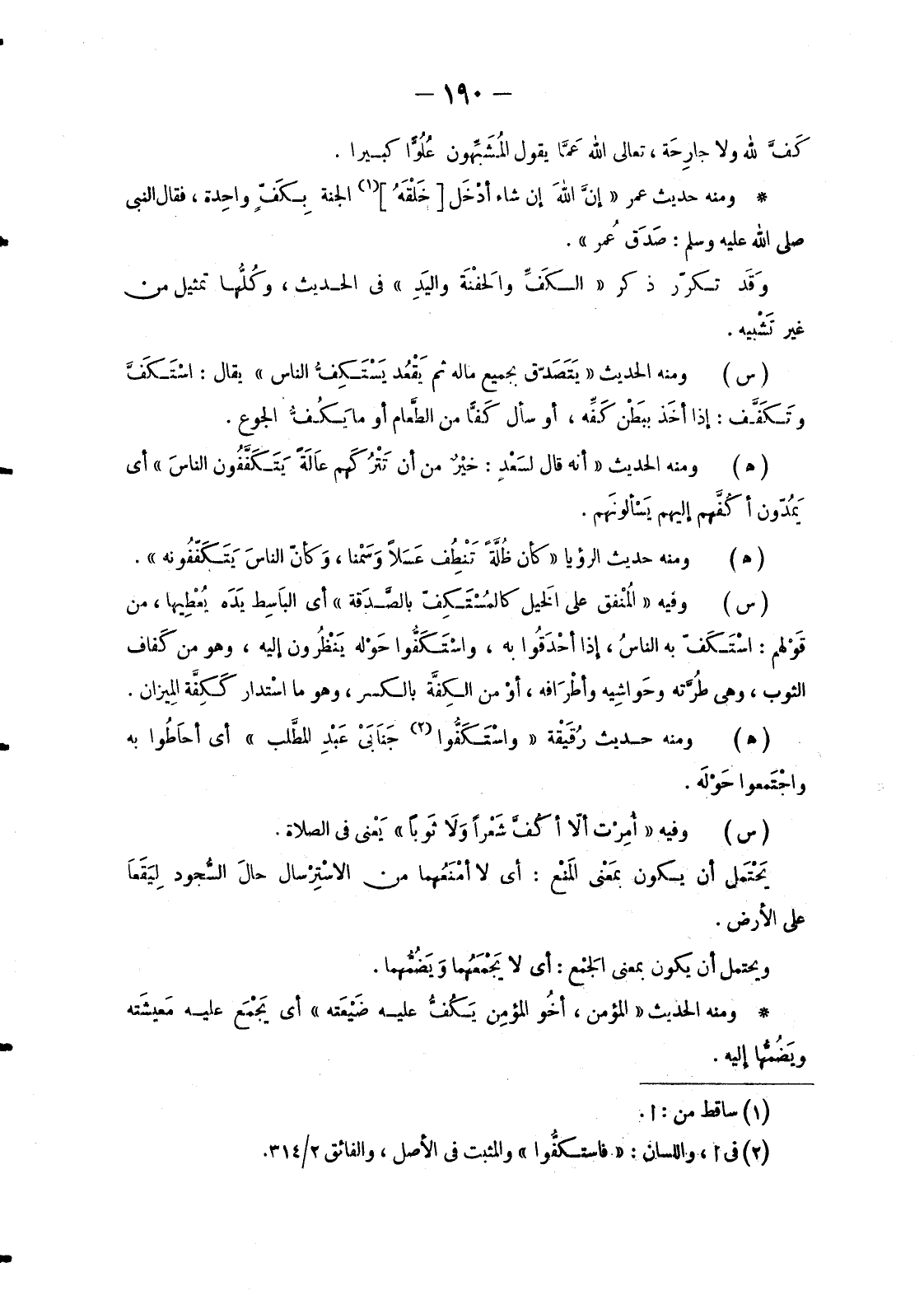 (2) في ا، واللسان: «فاستكُّفوا» والمثبت في الأصل، والفائق 2/ 314.