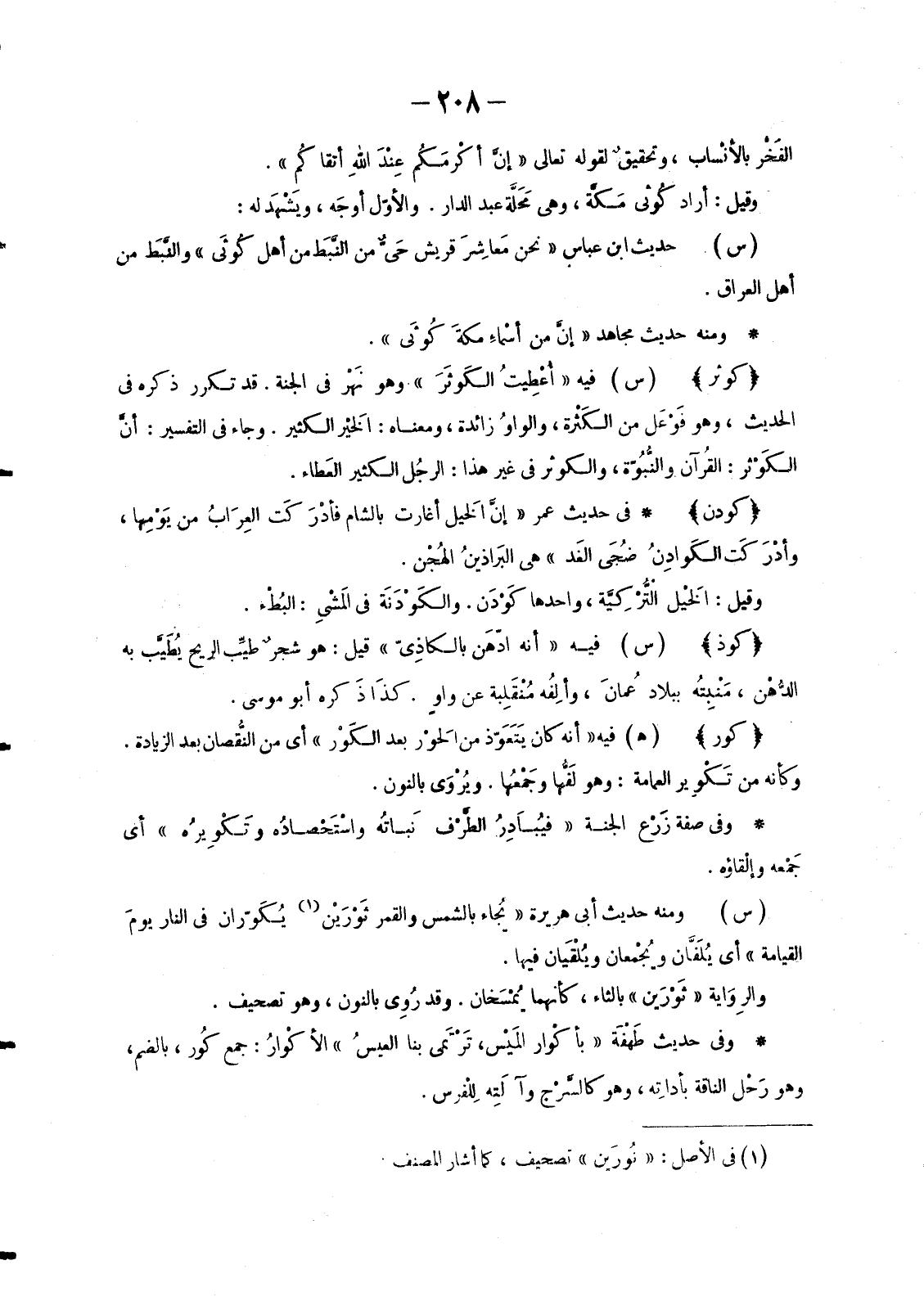 وَقِيلَ: أَرَادَ كُوثى مَكَّة، وَهِيَ مَحَلَّة عَبْدِ الدَّارِ. وَالْأَوَّلُ أوجَه، ويَشْهَد لَهُ: