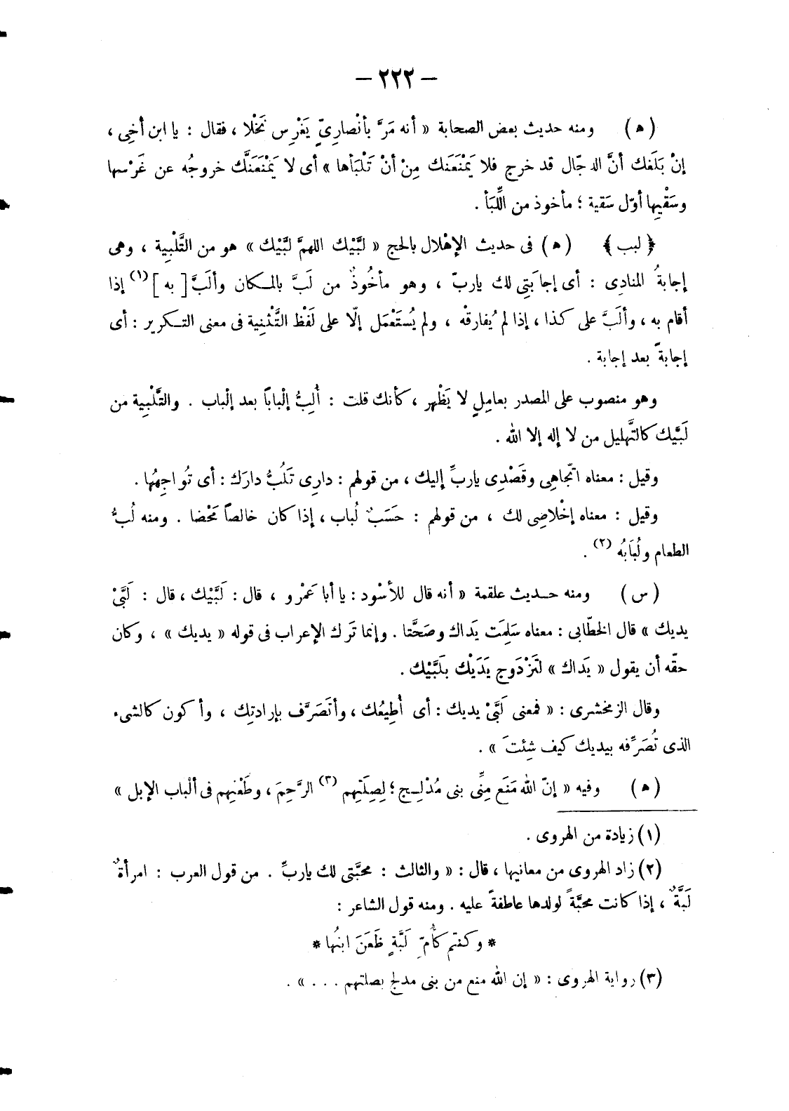 (2) زاد الهروى من معانيها، قال: «والثالثّ: محبَّتي لك يا ربِّ. من قول العرب: امرأةٌ لَبَّةٌ، إذا كانت محبَّةً لولدها عاطفةً عليه. ومنه قول الشاعر: