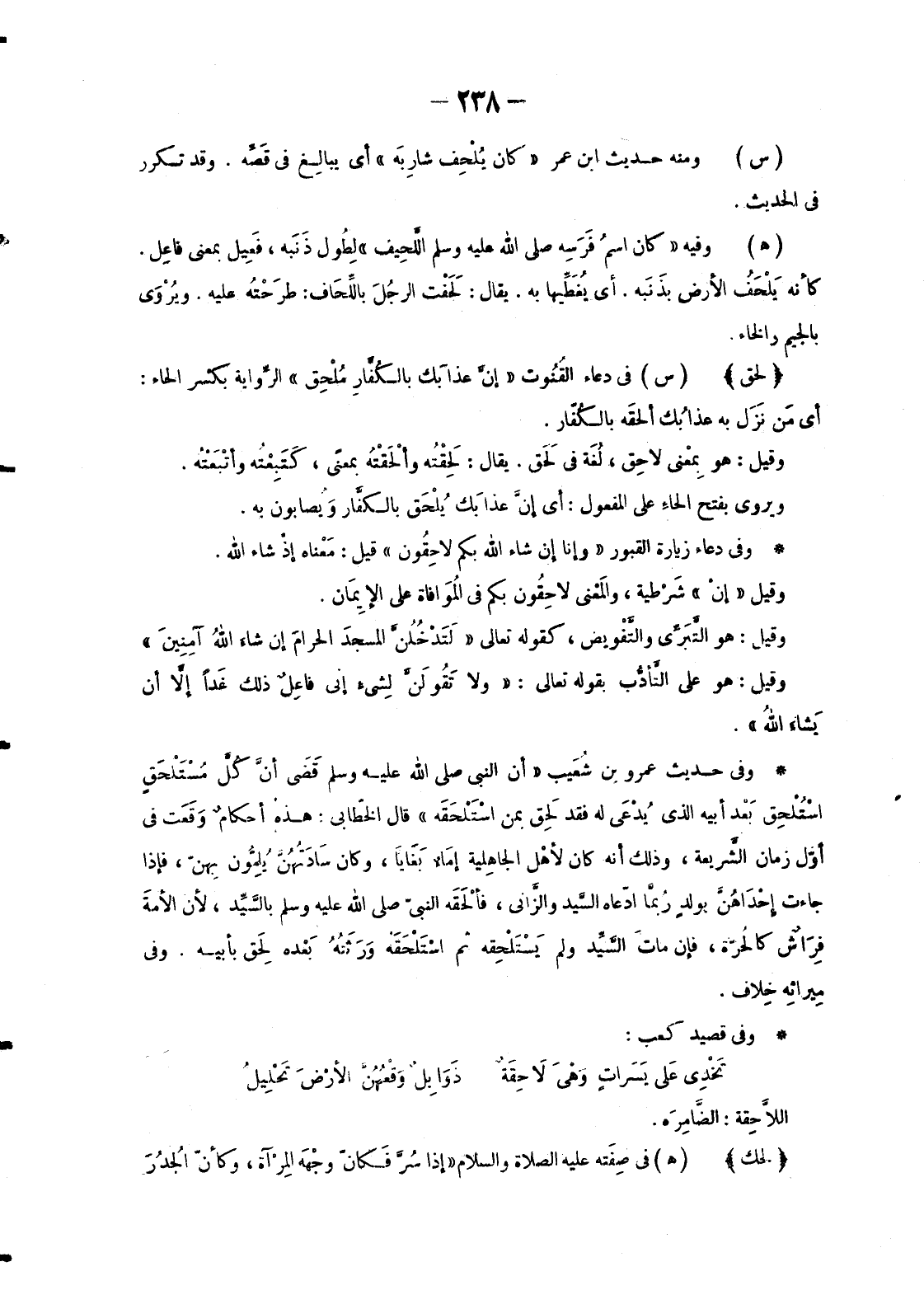 (هـ) وَفِيهِ «كَانَ اسمُ فَرَسِه صَلَّى اللَّهُ عَلَيْهِ وَسَلَّمَ اللَّحِيف» لِطُول ذَنَبه، فَعِيل بِمَعْنَى فاعِل.