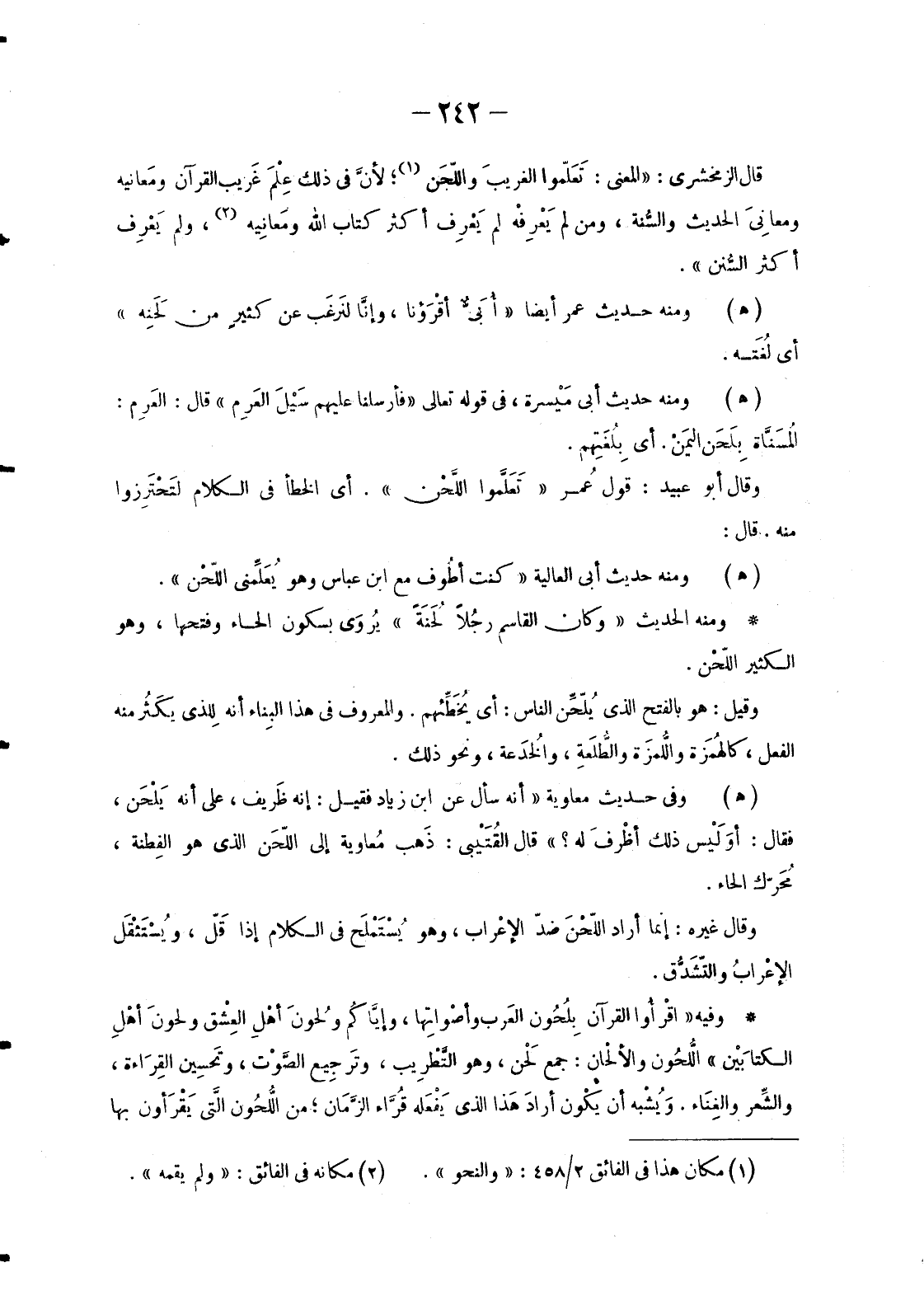 قَالَ الزَّمَخْشَرِيُّ: «الْمَعْنَى: تَعَلّموا الغريبَ واللَّحَن»