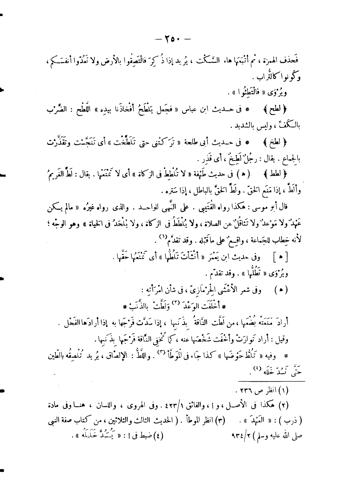 وَفِيهِ «تَلُطُّ حَوْضَها» كَذَا جَاء فِي الْموَطَّأ «3» . واللَّطُّ: الإلْصاق، يُريد تُلْصِقُه بالطّين حَتَّى تَسُدّ خَلَله «4» .