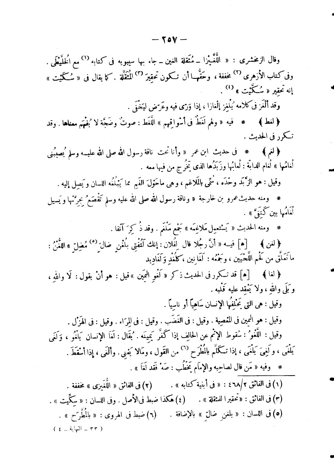 [هـ] فِيهِ «أنَّ رجُلاً قَالَ لفُلان: إِنَّكَ لَتُفْتِي بلُغْنٍ ضالٍّ «5» مُضِلٍّ» اللُّغْنُ: