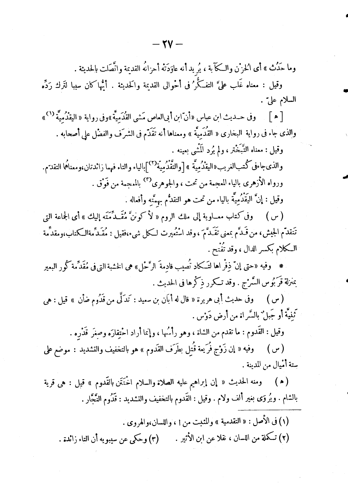 وَالَّذِي جَاءَ فِي كُتب الْغَرِيبِ «اليقْدُمِيَّة» [والتَّقْدُمِيَّة «2» ] بِالْيَاءِ وَالتَّاءِ فَهُمَا زَائِدَتَانِ، ومعناهُما التَّقَدُّمُ.