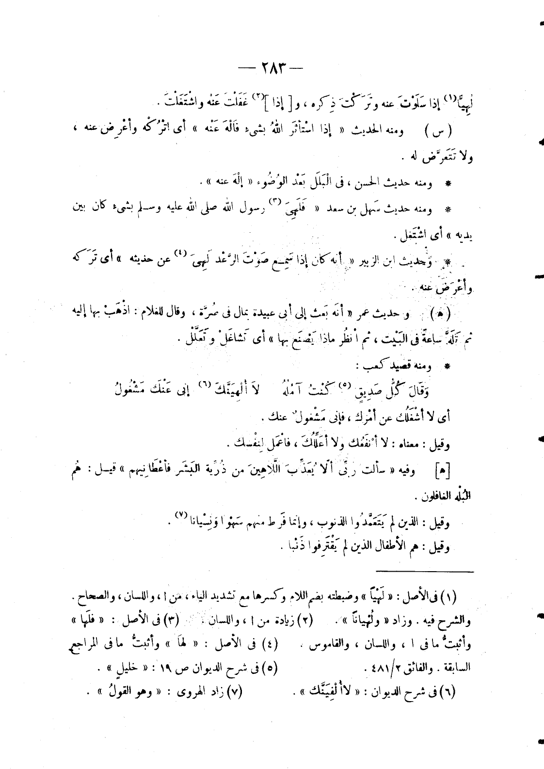 لُهِيّاً «1» إِذَا سَلَوْتَ عَنْهُ وتَرَكْتَ ذِكره، وَ [إِذَا] «2» غَفَلْتَ عَنْه واشْتَغَلْتَ.