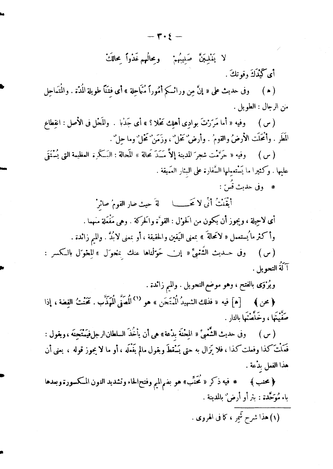 - فِيهِ ذِكْرُ «مُحَنِّب» هُوَ بِضَمِّ الْمِيمِ وَفَتْحِ الْحَاءِ وَتَشْدِيدِ النُّونِ الْمَكْسُورَةِ وَبَعْدَهَا بَاءٌ مُوَحَّدة: بِئْرٌ أَوْ أرضٌ بِالْمَدِينَةِ.