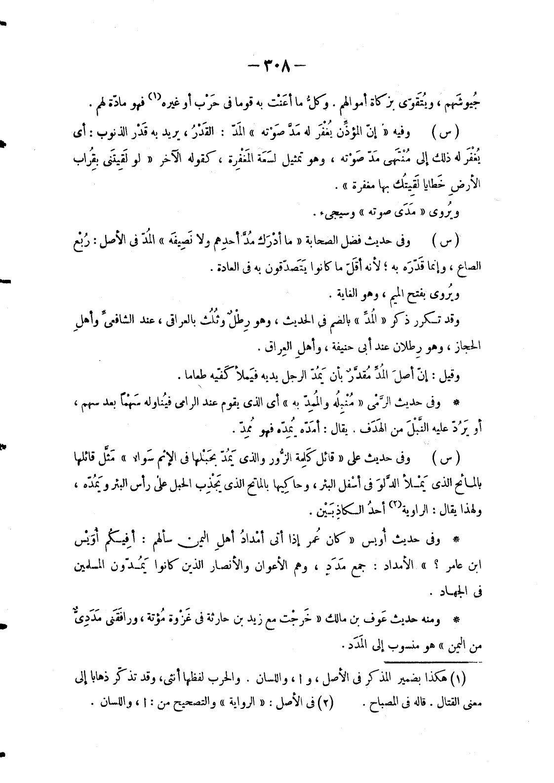 وَقَدْ تَكَرَّرَ ذِكْرُ «المُدّ» بِالضَّمِّ فِي الْحَدِيثِ، وَهُوَ رِطْلٌ وثُلُث بِالْعِرَاقِيِّ، عِنْدَ الشافعيِّ وأهلِ الْحِجَازِ، وَهُوَ رِطلان عِنْدَ أَبِي حَنِيفَةَ، وأهلِ العِراق.