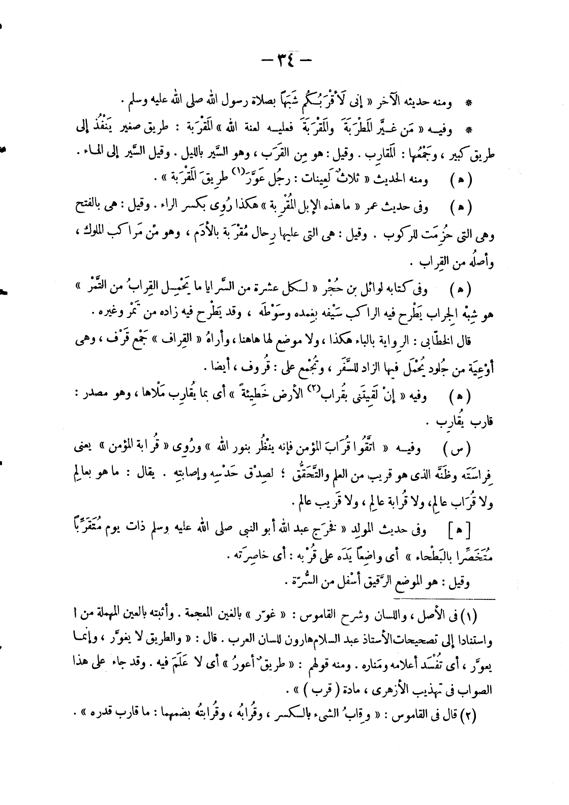 وَفِيهِ «مَنْ غَيَّرَ المَطْرَبَةَ والمَقْرَبَةَ فَعَلَيْهِ لَعْنَةُ اللَّهِ» المَقْرَبة: طَرِيقٌ صَغِيرٌ يَنْفُذ إِلَى طَرِيقٍ كَبِيرٍ، وجَمْعُها: المُقَارِب. وَقِيلَ: هُوَ مِن القَرَب، وَهُوَ السَّير بِاللَّيْلِ. وَقِيلَ السَّير إِلَى الْمَاءِ.