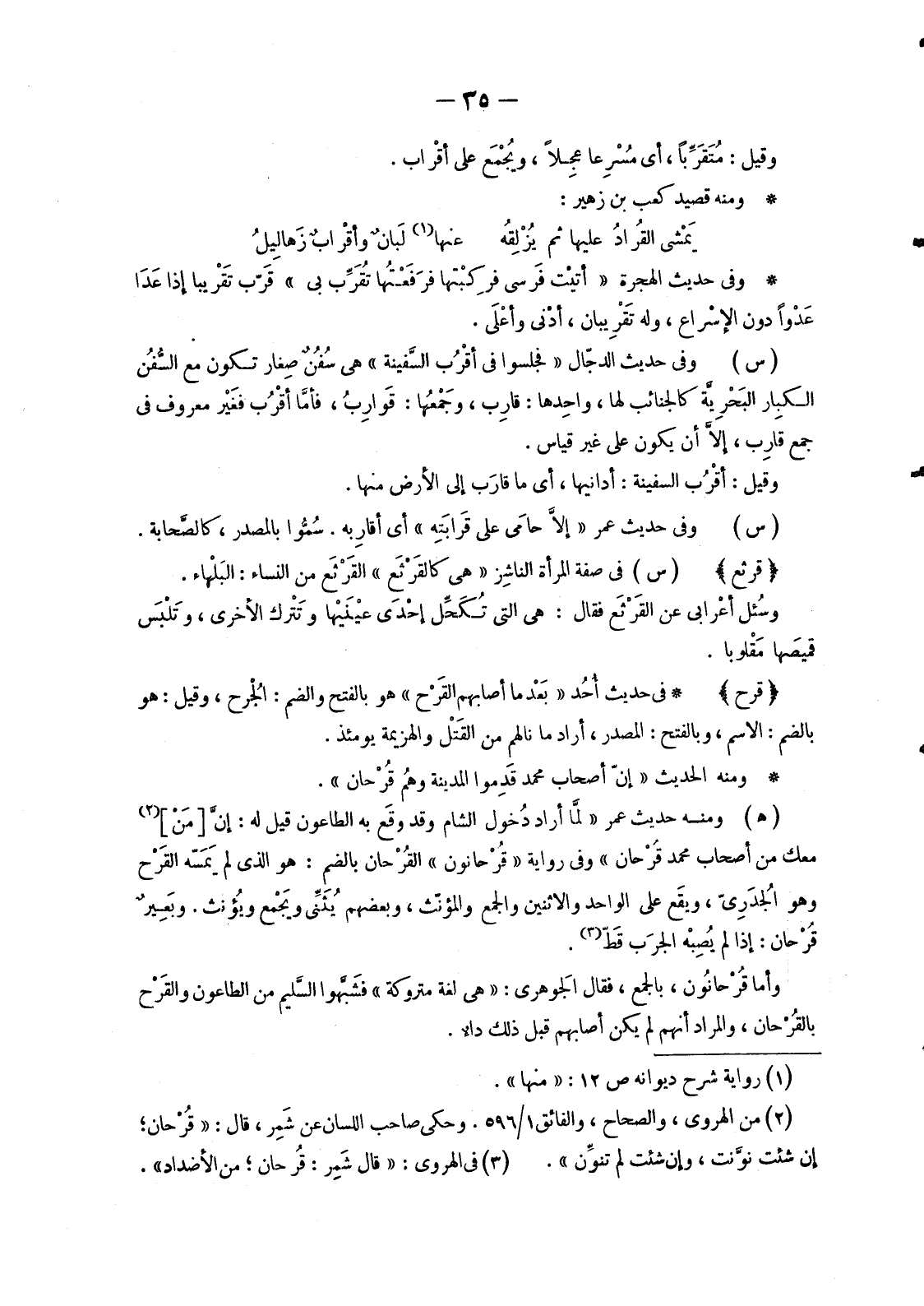 (2) من الهروي، والصحاح، والفائق 1/ 596. وحكى صاحب اللسان عن شَمِر، قال: «قُرحان؛ إن شئت نوَّنت، وإن شئت لم تنِّون» .