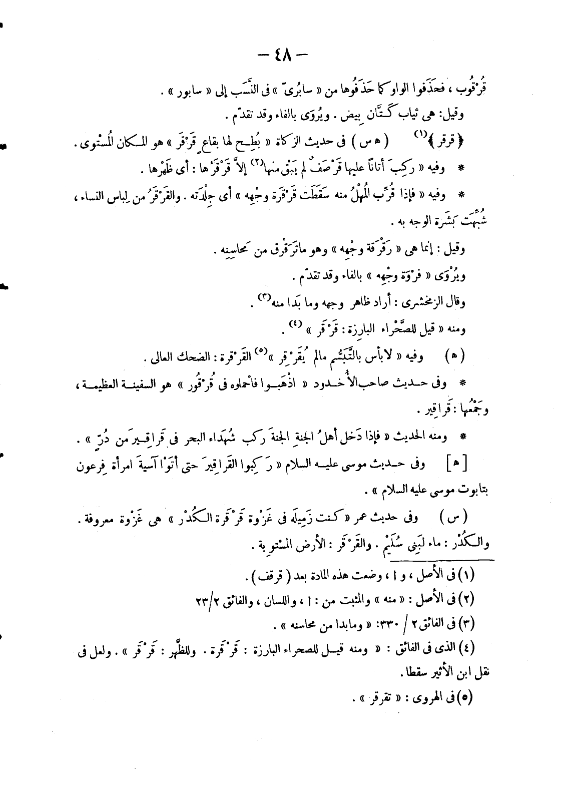 (4) الذي في الفائق: «ومنه قيل للصحراء البارزة: قَرْقَرة. وللظَّهر: قَرْقَر» . ولعل في نقل ابن الأثير سقطاً.