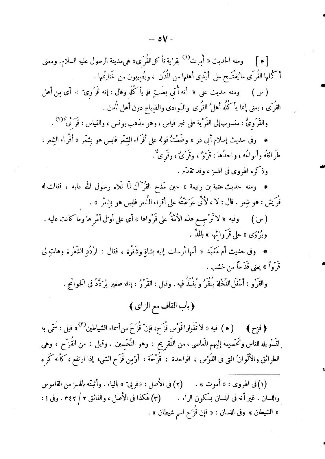 (2) في الأصل: «قرييّ» بالياء. وأثبتّه بالهمز من القاموس واللسان. غير أنه فى اللسان بسكون الراء.