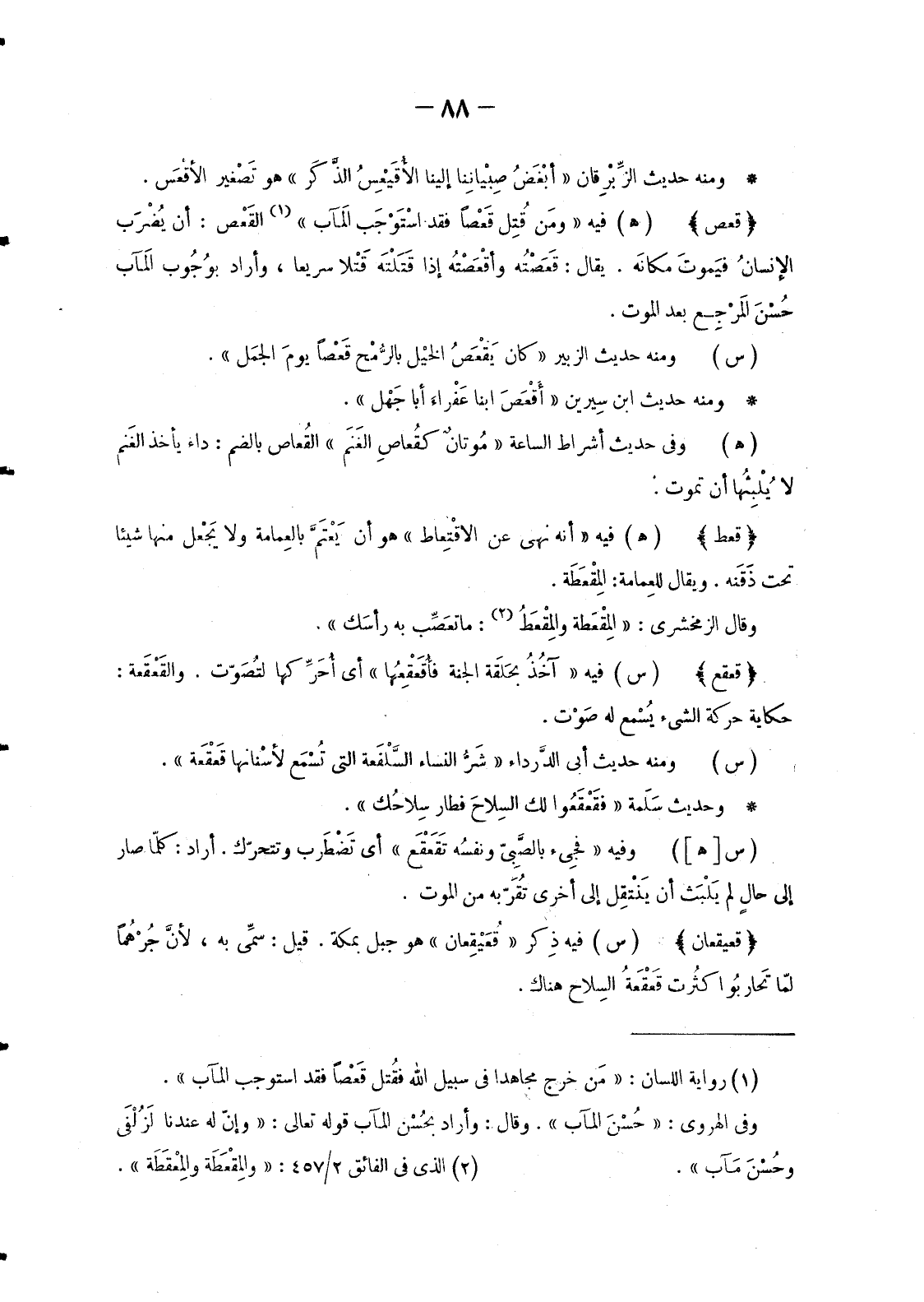 (1) رواية اللسان: «مَن خرج مجاهداً في سبيل الله فقُتل قَعْصاً فقد استوجب المآب» . وفي الهروي: «حسن المآب» . وقال: وأراد بحسن المآب قوله تعالى: «وَإِنَّ لَهُ عِنْدَنا لَزُلْفى وَحُسْنَ مَآبٍ» .