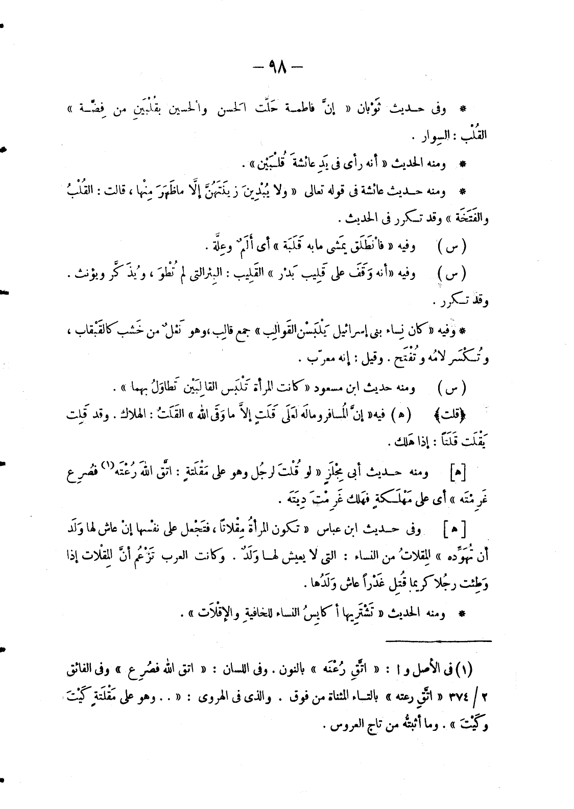 وَفِي حَدِيثِ ثَوْبان «إنَّ فَاطِمَةَ حَلَّت الحَسن والحُسين بقُلْبَيْنِ مِنْ فِضَّة» القُلْب: السِوار.