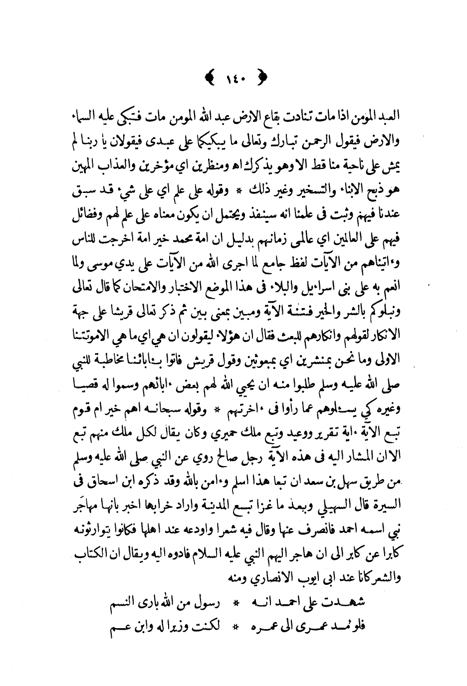 العبد المؤمن اذا مات تنادت بقاع الارض عبد الله المؤمن مات فتبكى عليه السماء والارض فيقول الرحمن تبارك وتعالى ما يبكيكما على عبدي فيقولان يا ربنا لم يمش على ناحية منا قط الا وهو يذكرك اه ومنظرين أي مؤخرين والعذاب المهين هو ذبح الابناء والتسخير وغير ذلك وقوله على علم أي على شيء قد سبق عندنا فيهم وثبت في علمنا انه سينفذ ويحتمل ان يكون معناه على علم لهم وفضائل فيهم على العالمين أي عالمي زمانهم بدليل ان امة محمد خير امة اخرجت للناس وءاتيناهم من الايات لفظ جامع لما اجرى الله من الآيات على يدي موسى ولما انعم به على بني اسرائيل والبلاء في هذا الموضع الاختبار والامتحان كما قال تعالى ونبلوكم بالشر والخير فتنة الآية ومبين بمعنى بين ثم ذكر تعالى قريشا على جهة الانكار لقولهم وانكارهم للبعث فقال ان هؤلاء ليقولون ان هي أي ما هي الا موتتنا الاولى وما نحن بمنشرين أي بمبعوثين وقول قريش فآتوا بآياتنا مخاطبة للنبي ص - طلبوا منه ان يحي الله لهم بعض ءابائهم وسموا له قصيا وغيره كي يسئلوهم عما رأووا في أخرتهم وقوله سبحانه اهم خير ام قوم تبع الآية اية تقرير ووعيد وتبع ملك حميري وكان يقال لكل ملك منهم تبع الا ان المشار اليه في هذه الآية رجل صالح روي عن النبي ص - من طريق سهل بن سعد ان تبعا هذا اسلم وأمن بالله وقد ذكره ابن اسحاق في السيرة قال السهيلي وبعد ما غزا تبع المدينة واراد خرابها اخبر بأنها مهاجر نبي اسمه احمد فانصرف عنها وقال فيه شعر واودعه عند اهلها فكانوايتوارثونه كابرا عن كابر الى ان هاجر اليهم النبي عليه السلام فادوه اليه ويقال ان الكتاب والشعر كان عند ابى ايوب الانصاري ومنه ... شهدت على احمد انه ... رسول من الله بارى النس م ... فلو مد عمرى الى عمره ... لكنت وزيرا له وابن عم