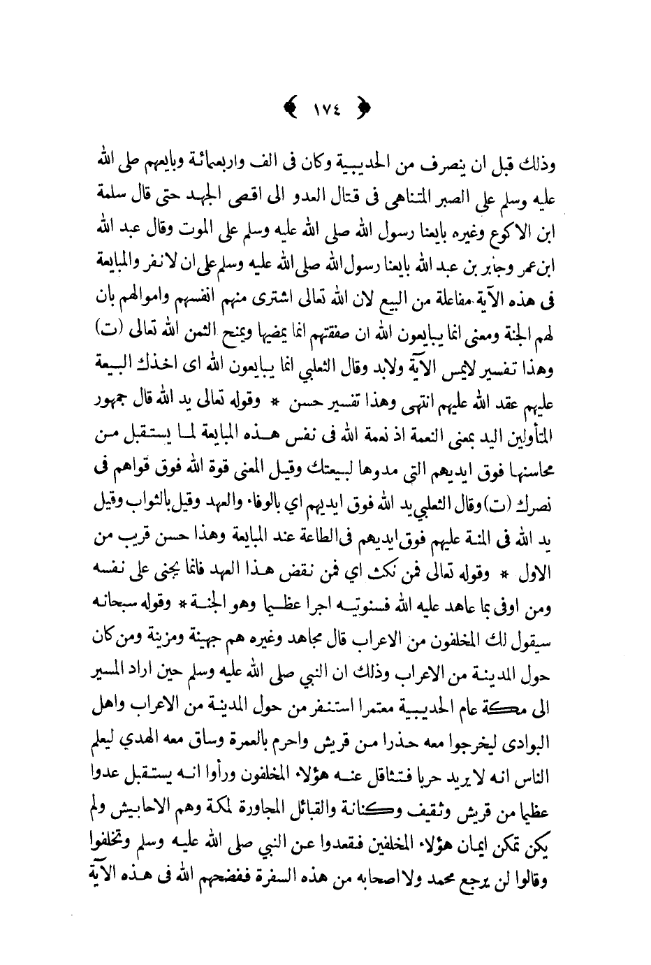 وذلك قبل أن ينصرف من الحديبية وكان في ألف وأربعمائة وبايعهم ص - على الصبر المتناهي في قتال العدو إلى أقصى الجهد حتى قال سلمة ابن الأكوع وغيره بايعنا رسول الله ص - على الموت وقال عبد الله ابن عمر وجابر بن عبد الله بايعنا رسول الله ص - على أن لا نفر والمبايعة في هذه الآية مفاعلة من البيع لأن الله تعالىاشترى منهم أنفسهم وأموالهم بأن لهم الجنة ومعنى إنما يبايعون الله إن صفقتهم إنما يمضيها ويمنح الثمن الله تعالى ت وهذا تفسير لا يمس الآية ولا بد وقال الثعلبي إنما يبايعون الله أي أخذك البيعة عليهم عقد الله عليهم انتهى وهذا تفسير حسن