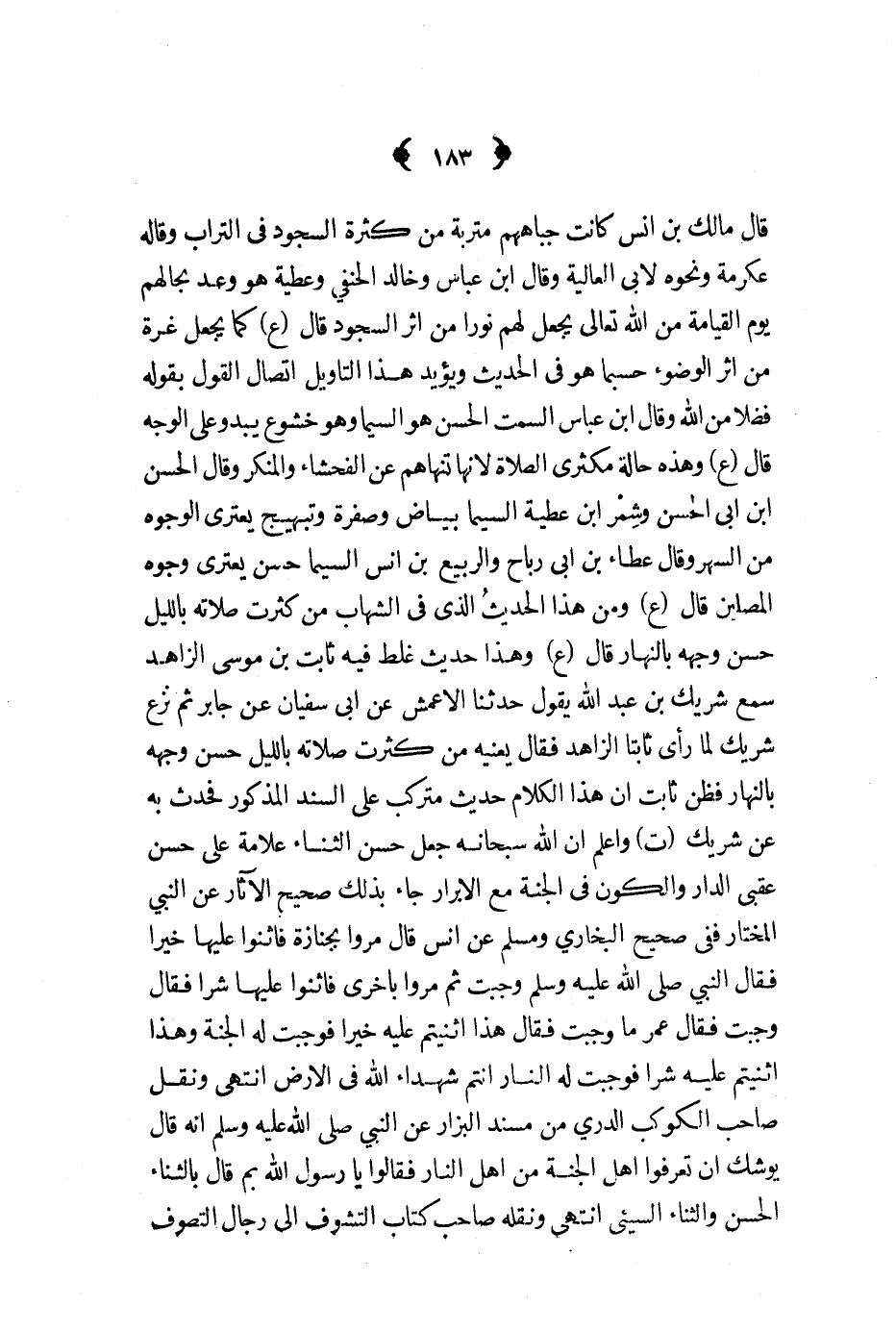 قال مالك بن أنس كانت جباههم متربة من كثرة السجود في التراب وقاله عكرمة ونحوه لأبي العالية وقال ابن عباس وخالد الحنفي وعطية هو وعد بحالهم يوم القيامة من الله تعالى يجعل لهم نورا من أثر السجود قال ع كما يجعل غرة من أثر الوضوء حسبما هو في الحديث ويؤيد هذا التأويل اتصال القول بقوله فضلا من الله وقال ابن عباس السمت الحسن هو السيما وهو خشوع يبدو على الوجه قال ع وهذه حالة مكثري الصلاة لأنها تنهاهم عن الفحشاء والمنكر وقال الحسن ابن أبي الحسن وشمر بن عطية السيما بياض وصفرة وتبهيج يعتري الوجوه من السهر وقال عطاء بن أبي رباح والربيع بن أنس السيما حسن يعتري وجوه المصلين قال ع ومن هذا الحديث الذي في الشهاب من كثرت صلاته بالليل حسن وجهه بالنهار قال ع وهذا حديث غلط فيه ثابت بن موسى الزاهد سمع شريك بن عبدالله يقول حدثنا الأعمش عن أبي سفيان عن جابر ثم نزع شريك لما رأى ثابتا الزاهد فقال يعنيه من كثرت صلاته بالليل حسن وجهه بالنهار فظن ثابت أن هذاالكلام حديث متركب على السند المذكور فحدث به عن شريك ت واعلم أن الله سبحانه جعل حسن الثناء علامة على حسن عقبى الدار والكون في الجنة مع الأبرار جاء بذلك صحيح الآثار عن النبي المختار ففي صحيح البخاري ومسلم عن أنس قال مروا بجنازة فأثنوا عليها خيرا فقال النبي ص - وجبت ثم مروا بأخرى فأثنوا عليها شرا فقال وجبت فقال عمر ما وجبت فقال هذا أثنيتم عليه خيرا فوجبت له الجنة وهذا أثنيتم عليه شرا فوجبت له النار أنتم شهداء الله في الأرض انتهى ونقل صاحب الكوكب الدري من مسند البزار عن النبي ص - أنه قال يوشك أن تعرفوا أهل الجنة من أهل النار فقالوا يا رسول الله بم قال بالثناء الحسن والثناء السيء انتهى ونقله صاحب كتاب التشوف إلى رجال التصوف