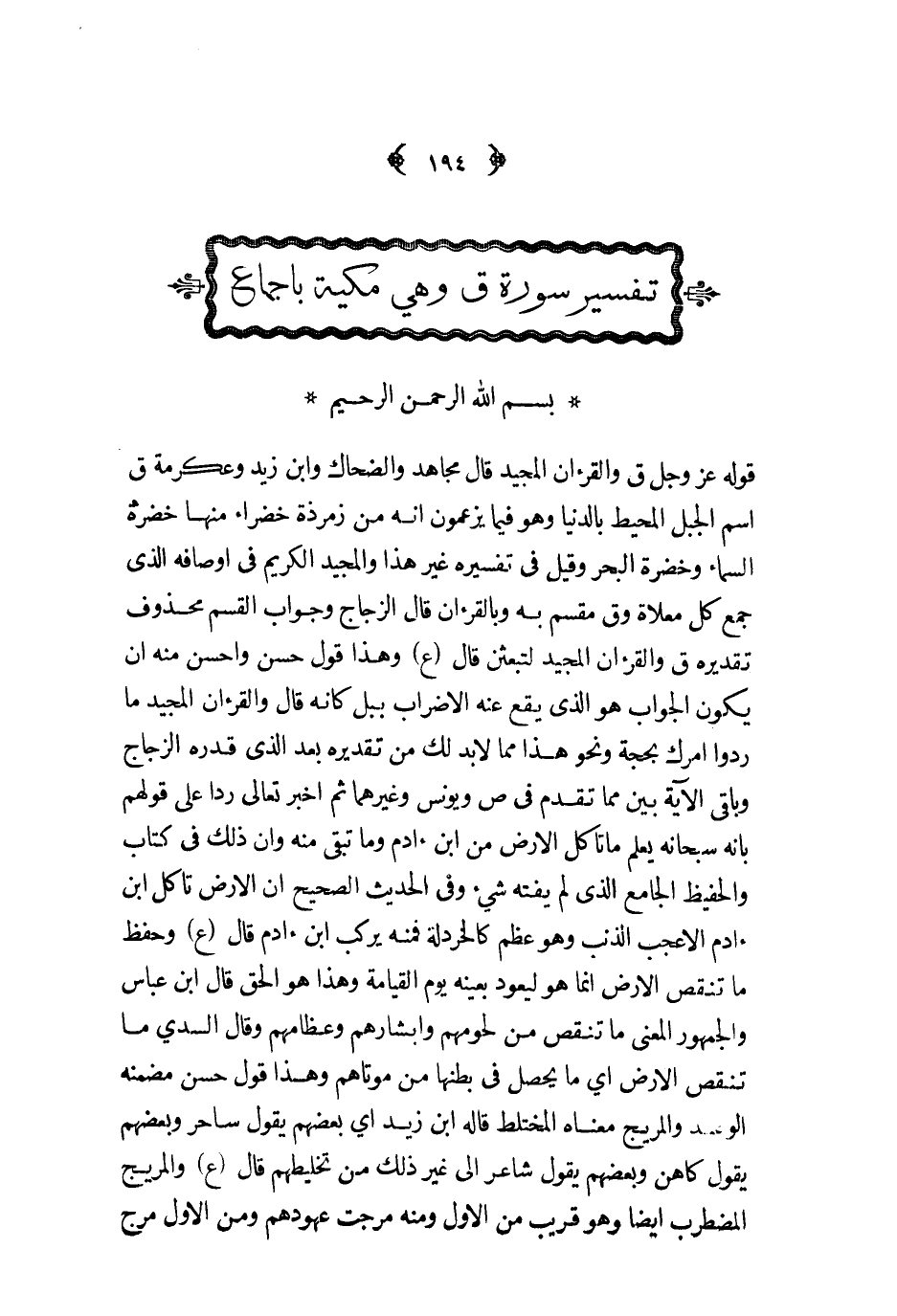 تفسير سورة ق وهي مكية باجماع