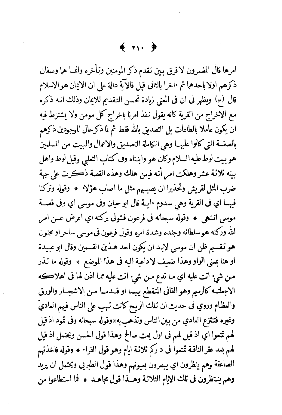 امرها قال المفسرون لا فرق بين تقدم ذكر المؤمنين وتأخره وانما هما وصفان ذكرهم اولا باحدهما ثم أخرا بالثاني قيل فالآية دالة على ان الايمان هو الاسلام قال ع ويظهر لي ان في المعنى زيادة تحسن التقديم للايمان وذلك انه ذكره مع الاخراج من القرية كأنه يقول نفذ امرنا باخراج كل مؤمن ولا يشترط فيه ان يكون عاملا بالطاعات بل التصديق بالله فقط ثم لما ذكر حال الموجودين ذكرهم بالصفة التي كانوا عليها وهي الكاملة التصديق والاعمال والبيت من المسلمين هو بيت لوط عليه السلام وكان هو وابنتاه وفي كتاب الثعلبي وقيل لوط واهل بيته ثلاثة عشر وهلكت امرأته فيمن هلك وهذه القصة ذكرت على جهة ضرب المثل لقريش وتحذيرا ان يصيبهم مثل ما اصاب هؤلاء وقوله وتركنا فيها أي في القرية وهي سدوم آية قال ابو حيان وفي موسى أي وفي قصه موسى انتهى وقوله سبحانه في فرعون فتولى بركته أي اعرض عن امر الله وركنه هو سلطانه وجنده وشدة امره وقول فرعون في موسى ساحرا او مجنون و تقسيم ظن ان موسى لا بد ان يكون احد هذين القسمين وقال ابو عبيدة او هنا بمعنى الواو وهذا ضعيف لا داعية اليه في هذا الموضع وقوله ما تذر من شيء اتت عليه أي ما تدع من شيء اتت عليه مما اذن لها في اهلاكه الا جعلته كالرميم وهو الفاني المتقطع يبسا او قدما من الأشجار والورق والعظام وروي في حديث ان تلك الريح كانت تهب على الناس فيهم العادي وغيره فتنتزع من بين الناس وتذهب به وقوله سبحانه وفي ثمود اذا قيل لهم تمتعوا أي اذ قيل لهم في أول بعث صالح وهذا قول الحسن ويحتمل اذ قيل لهم بعد عقر الناقة تمتعوا في دركم ثلاثة ايام وهو قول الفراء وقوله فاخذتهم الصاعقة وهم ينظرون أي يبصرون بعيونهم وهذا قول الطبري ويحتمل ان يريد وهم ينتظرون في تلك الايام الثلاثة وهذا قول مجاهد فما استطاعوا من