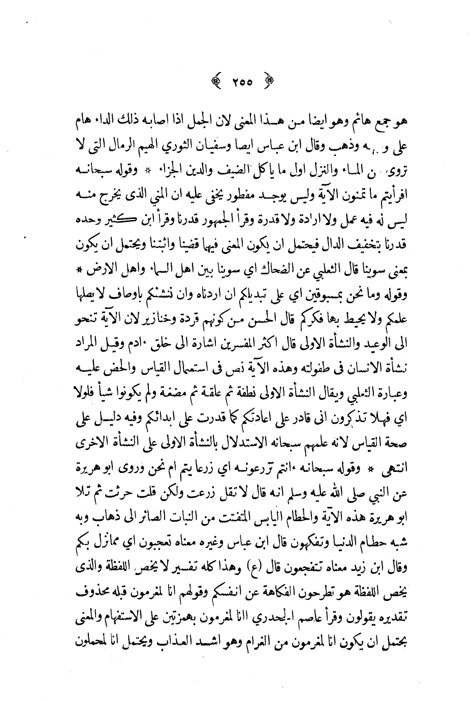 وقوله سبحانه أنتم تزرعونه أي زرعا يتم أم نحن وروي أبو هريرة عن النبي ص - أنه قال لا تقل زرعت ولكن قلت حرثت ثم تلا أبو هريرة هذه الآية والحطام اليابس المتفتت من النبات الصائر إلى ذهاب وبه شبه حطام الدنيا وتفكهون قال ابن عباس وغيره معناه تعجبون أي مما نزل بكم وقال ابن زيد معناه تتفجعون قال ع وهذا كله تفسير لا يخص اللفظة والذي يخص اللفظة هو تطرحون الفكاهة عن أنفسكم وقولهم أنا لمغرمون قبله محذوف تقديره يقولون وقرأ عاصم الجحدري أإنا لمغرمون بهمزتين على الاستفهام والمعنى يحتمل أن يكون انا لمغرمون من الغرام وهو أشد العذاب ويحتمل أنا لمحملون