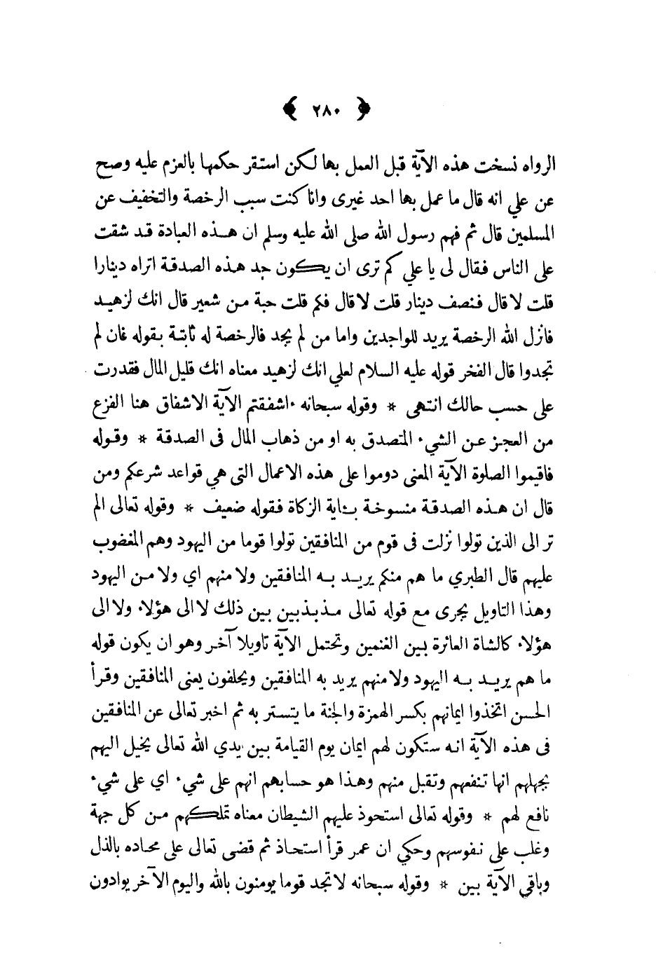 الرواة نسخت هذه الآية قبل العمل بها لكن استقر حكمها بالعزم عليه وصح عن علي أنه قال ما عمل بها أحد غيري وأنا كنت سبب الرخصة والتخفيف عن المسلمين قال ثم فهم رسول الله ص - أن هذه العبادة قد شقت على الناس فقال لي يا علي كم ترى أن يكون جد هذه الصدقة أتراه دينارا قلت لا قال فنصف دينار قلت لا قال فكم حبة من شعير قال إنك لزهيد فأنزل الله الرخصة يريد للواجدين وأما من لم يجد فالرخصة له ثابتة بقوله فإن لم تجدوا قال الفخر قوله عليه السلام لعلي إنك لزهيد معناه إنك قليل المال فقدرت على حسب حالك انتهى