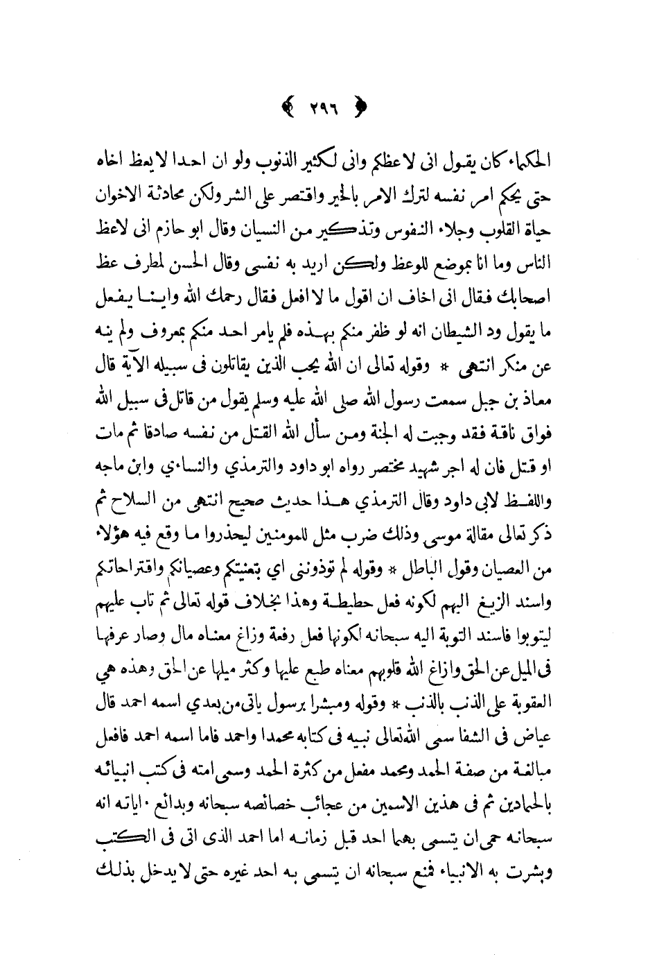 وقوله ومبشرا برسول يأتي من بعدي اسمه أحمد قال عياض في الشفا سمى الله تعالى نبيه في كتابه محمدا وأحمد فأما اسمه أحمد فافعل مبالغة من صفة الحمد ومحمد مفعل من كثرة الحمد وسمى أمته في كتب أنبيائه بالحمادين ثم في هذين الاسمين من عجائب خصائصه سبحانه وبدائع اياته أنه سبحانه حمى أن يتسمى بهما أحد قبل زمانه أما أحمد الذي اتى في الكتب وبشرت به الأنبياء فمنع سبحانه أن يتسمى به أحد غيره حتى لا يدخل بذلك