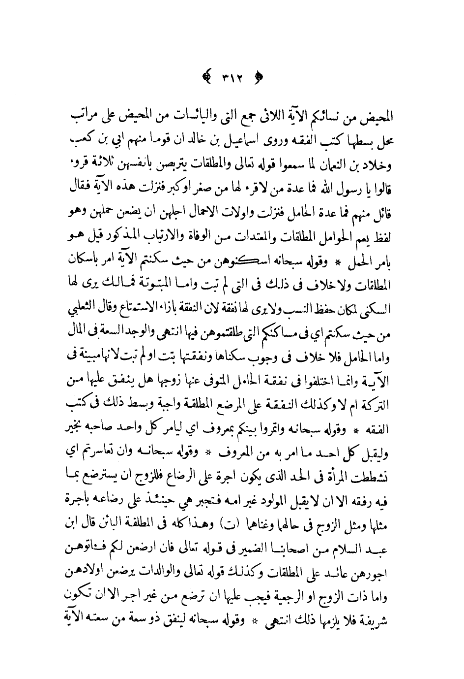 وقوله سبحانه أسكنوهن من حيث سكنتم الآية أمر بإسكان المطلقات ولا خلاف في ذلك في التي لم تبت وأما المبتوتة فمالك يرى لها السكنى لمكان حفظ النسب ولا يرى لها نفقة لأن النفقة بإزاء الاستمتاع وقال الثعلبي من حيث سكنتم أي في مساكنكم التي طلقتموهن فيها انتهى والوجد السعة في المال وأما الحامل فلا خلاف في وجوب سكناها ونفقتها بتت أو لم تبت لأنها مبينة في الآية وإنا اختلفوا في نفقة الحامل المتوفى عنها زوجها هل ينفق عليها من التركة أم لا وكذلك النفقة على المرضع المطلقة واجبة وبسط ذلك في كتب الفقه
