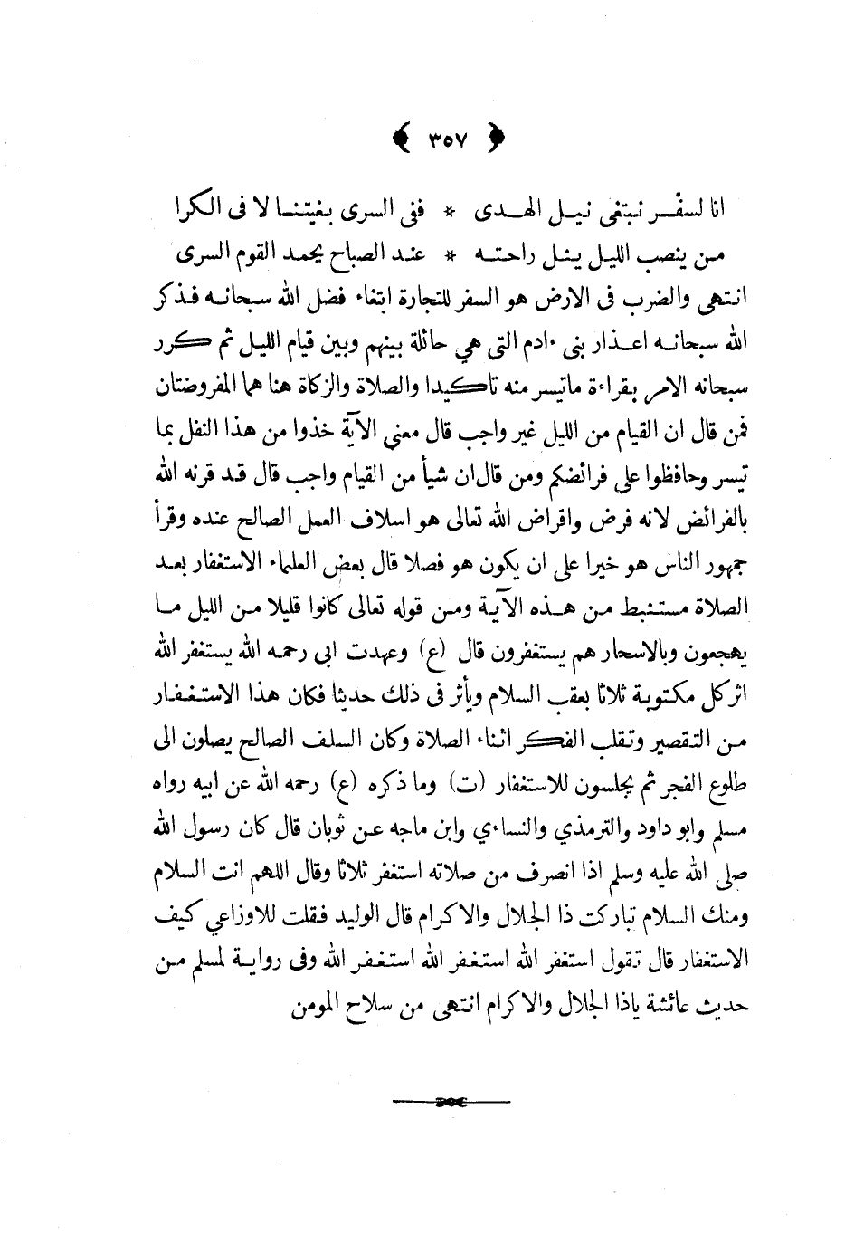 انا لسفر نبتغي نيل الهدى ... ففي السرى بغيتنا لا في الكرا ... من ينصب الليل ينل راحته ... عند الصباح يحمد القوم السرى ...