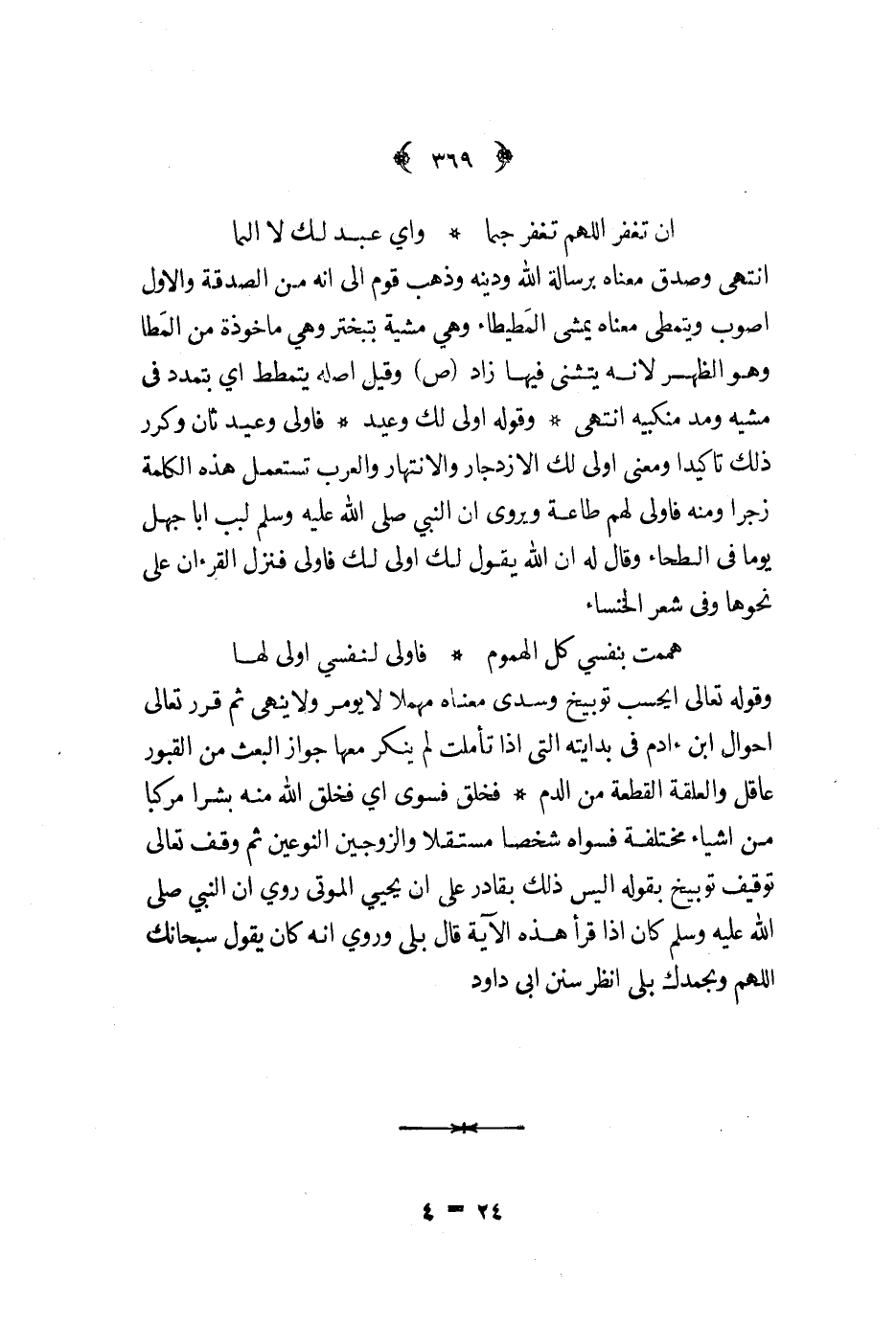 فاولى وعيد ثان وكرر ذلك تاكيدا ومعنى اولى لك الازدجار والانتهار والعرب تستعمل هذه الكلمة زجرا ومنه فاولى لهم طاعة ويروى ان النبي ص - لبب ابا جهل يوما في الطحاء وقال له ان الله يقول لك اولى لك فاولى فنزل القرءان على نحوها وفي شعر الخنساء ... هممت بنفسي كل الهموم ... فاولى لنفسي اولى لها ...