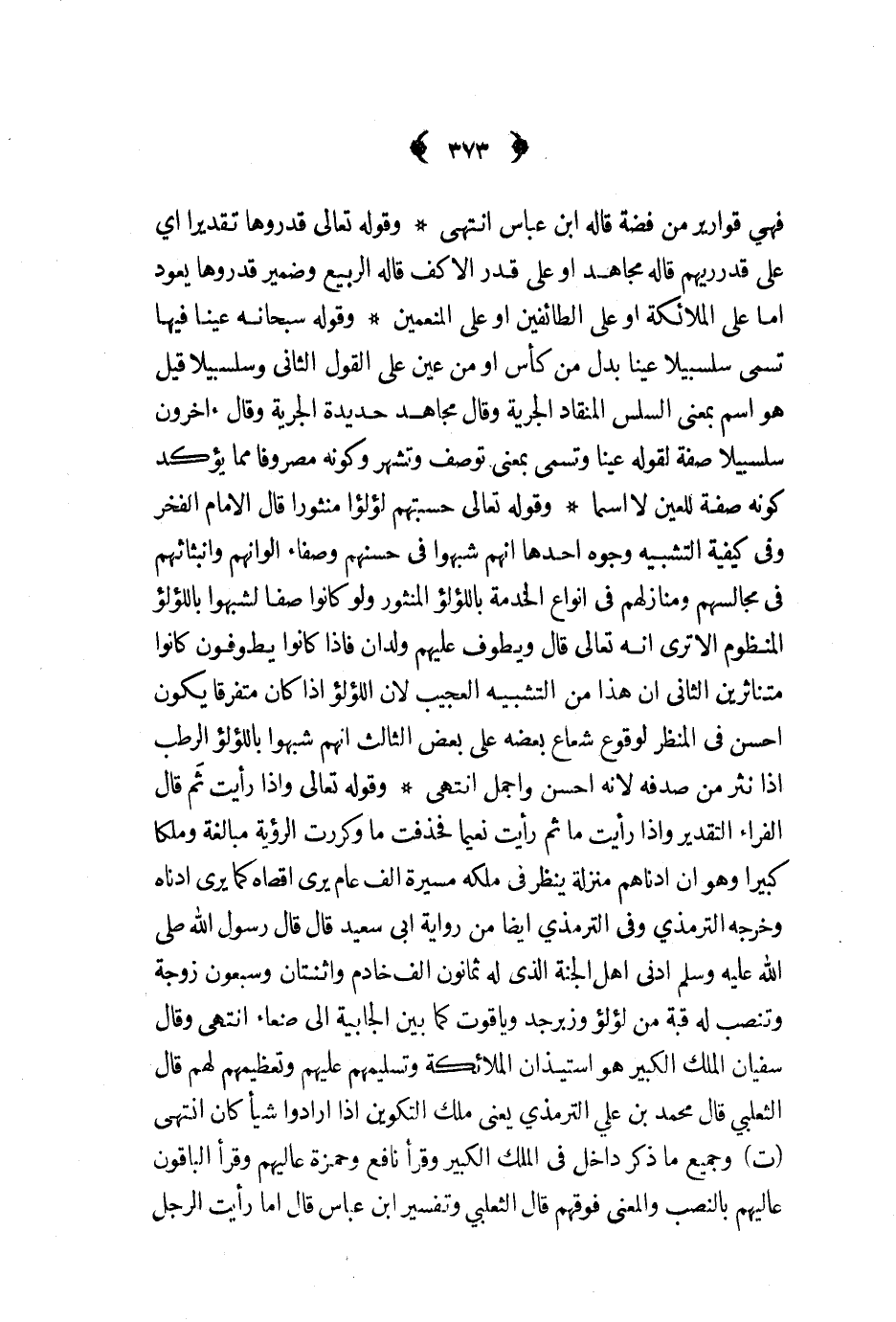 وقوله تعالى حسبتهم لؤلؤا منثورا قال الامام الفخر وفي كيفية التشبيه وجوه احدها انهم شبهوا في حسنهم وصفاء الوانهم وانبثاثهم في مجالسهم ومنازلهم في انواع الخدمة باللؤلؤ المنثور ولو كانوا صفا لشبهوا باللؤلؤ المنظوم الا ترى انه تعالى قال ويطوف عليهم ولدان فاذا كانوا يطوفون كانوا متناثرين الثاني ان هذا من التشبيه العجيب لان اللؤلؤ اذا كان متفرقا يكون احسن في المنظر لوقوع شعاع بعضه على بعض الثالث انهم شبهوا باللؤلؤ الرطب اذا نثر من صدفه لانه احسن واجمل انتهى
