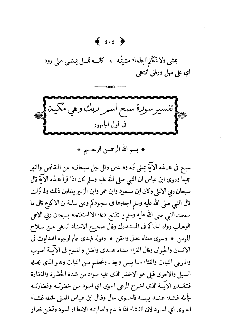 تفسير سورة سبح اسم ربك وهي مكية في قول الجمهور