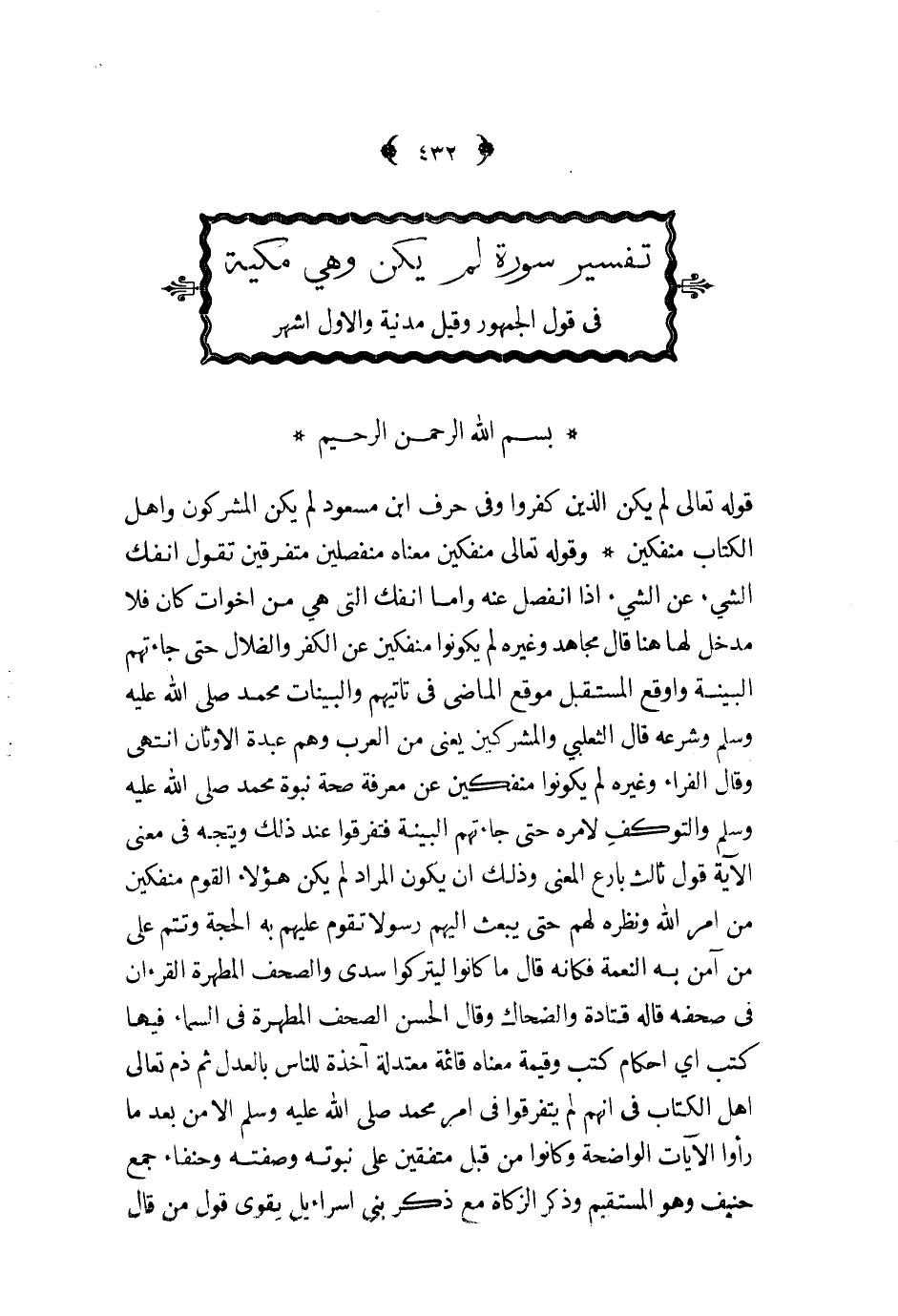 تفسير سورة لم يكن وهي مكية في قول الجمهور وقيل مدنية والاول اشهر