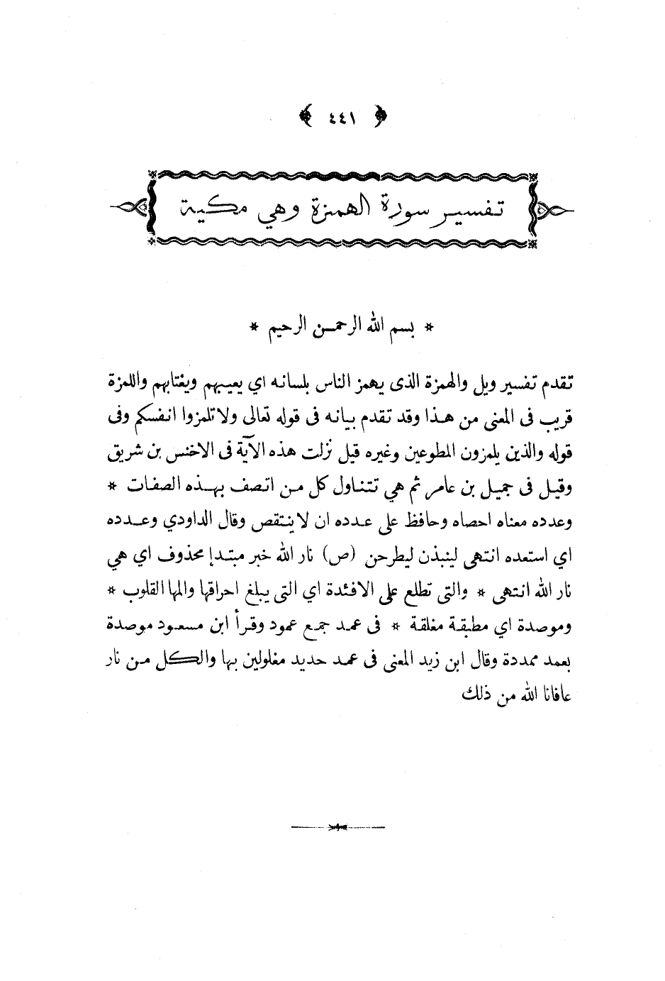 وعدده معناه احصاه وحافظ على عدده ان لا ينتقص وقال الداودي وعدده اي استعده انتهى لينبذن ليطرحن ص نار الله خبر مبتدأ محذوف اي هي نار الله انتهى