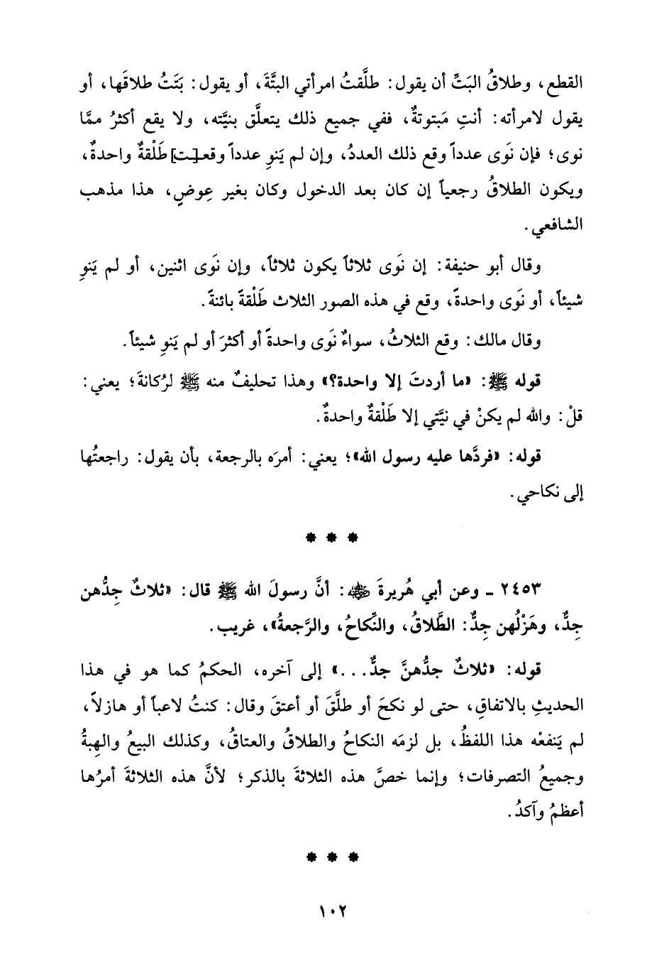 2453 - وعن أبي هُريرةَ - رضي الله عنه -: أنَّ رسولَ الله - صلى الله عليه وسلم - قال: "ثلاثٌ جِدُّهن جِدٌّ وهَزْلُهن جِدٌّ: الطَّلاقُ، والنِّكَاحُ، والرَّجعةُ"، غريب.