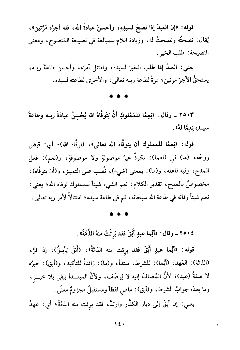 2503 - وقال: "نِعِمَّا للمَمْلوكِ أن يَتَوفَّاهُ الله يُحْسِنُ عبادَةَ ربه وطاعةَ سيدهِ نِعِمَّا لهُ".
