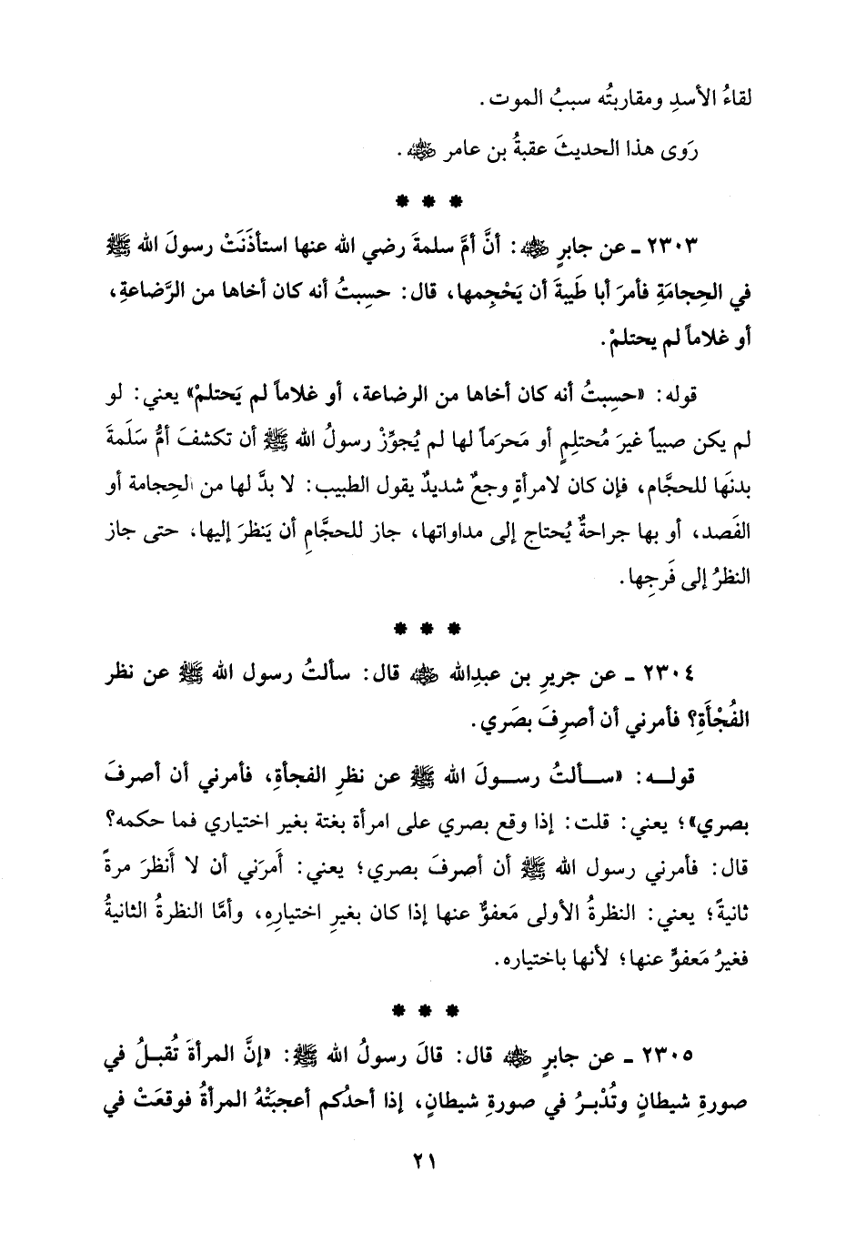 2304 - عن جريرِ بن عبدِ الله - رضي الله عنه - قال: سألتُ رسول الله - صلى الله عليه وسلم - عن نظر الفُجْأَةِ؟ فأمرني أن أصرِفَ بصَري.
