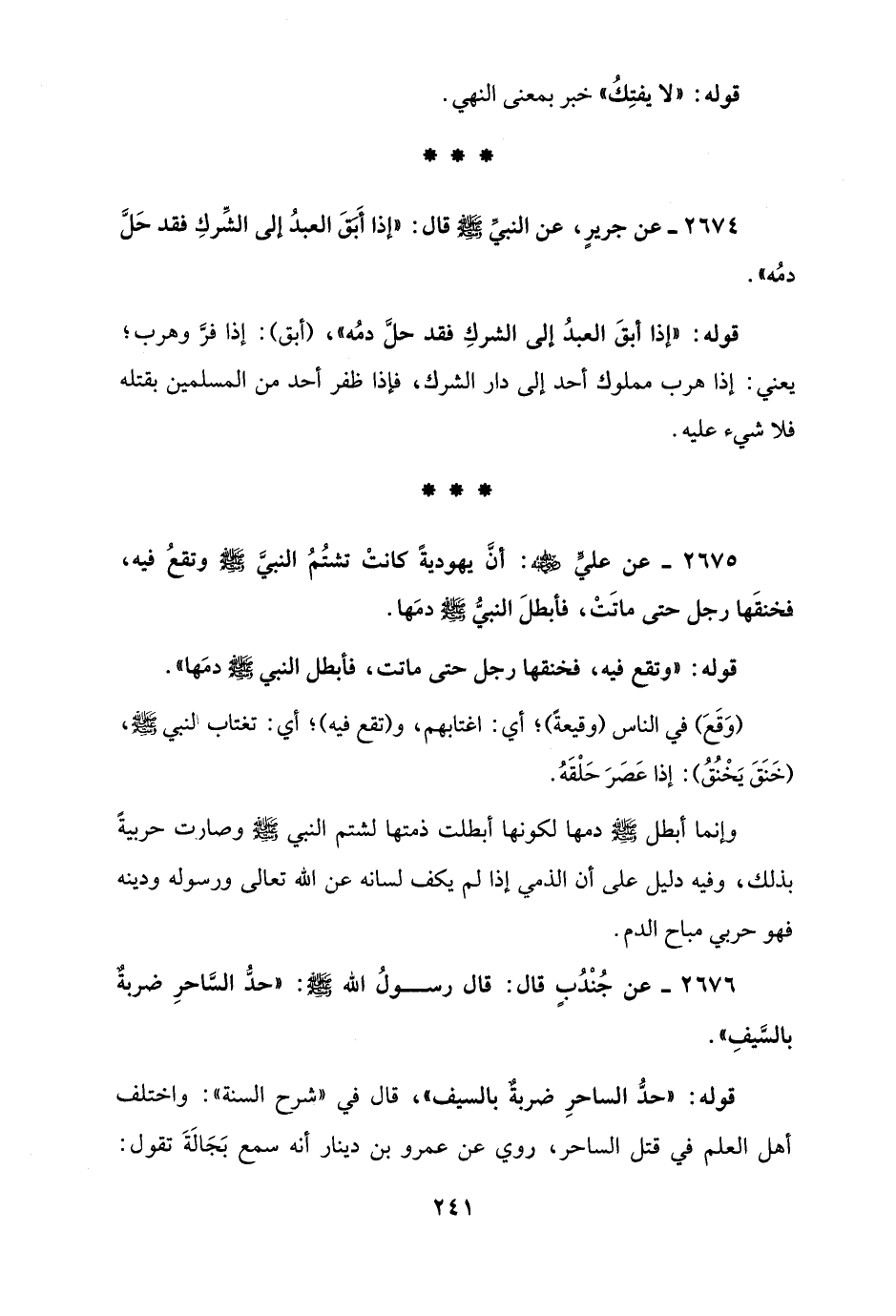 2676 - عن جُنْدُبٍ قال: قال رسولُ الله - صلى الله عليه وسلم -: "حدُّ السَّاحرِ ضربةٌ بالسَّيفِ".