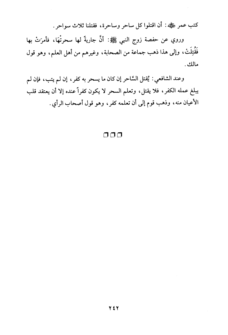 كتب عمر - رضي الله عنه -: أن اقتلوا كل ساحر وساحرة، فقتلنا ثلاث سواحر.