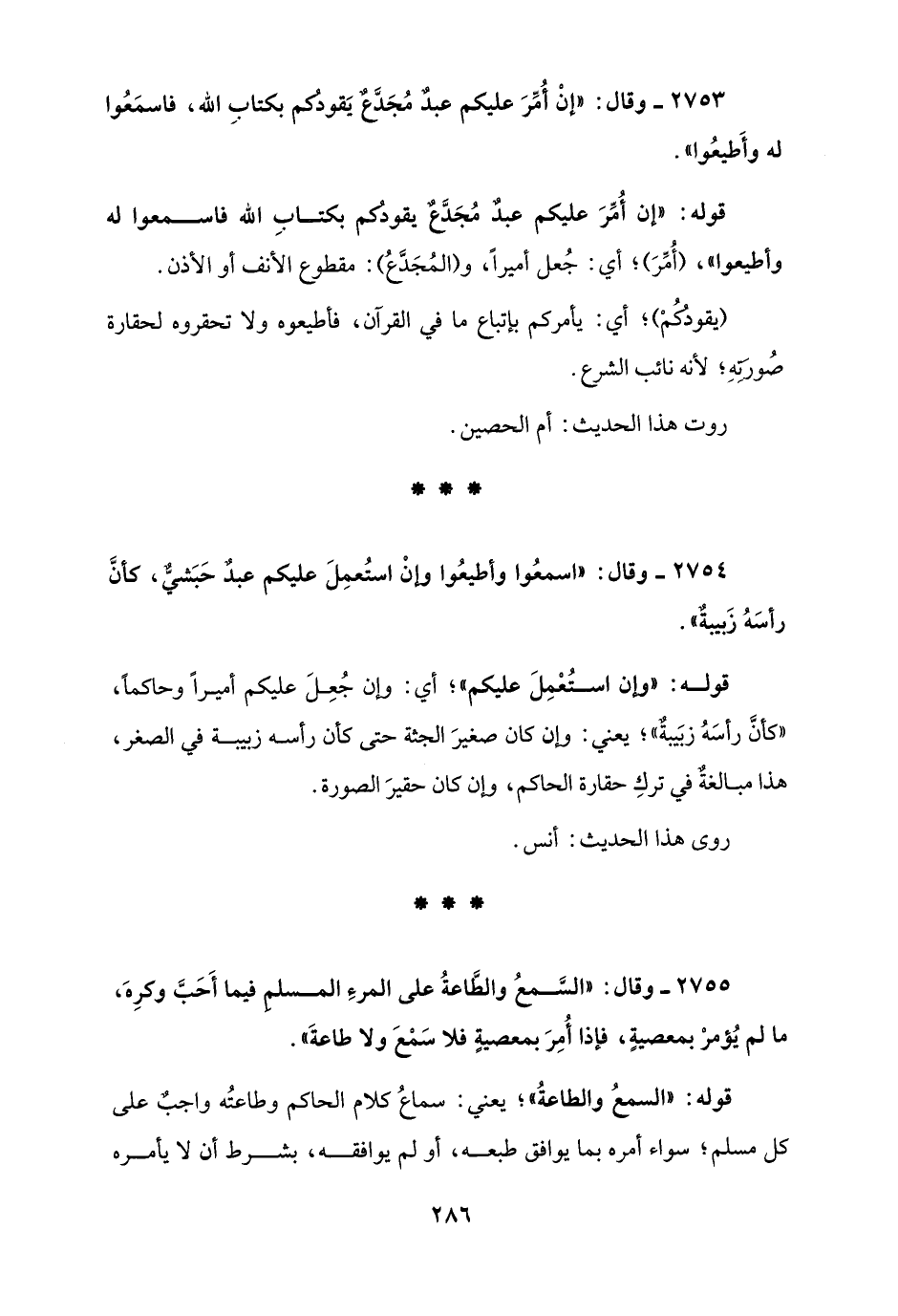 2753 - وقال: "إنْ أُمِّرَ عليكم عبدٌ مُجَدَّعٌ يَقودُكم بكتابِ الله، فاسمَعُوا له وأَطيعُوا".
