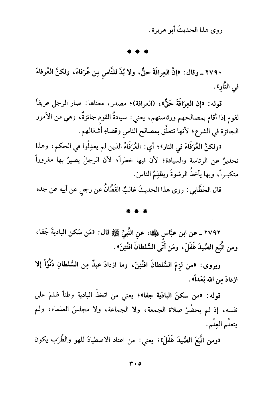 2792 - عن ابن عبَّاسٍ - رضي الله عنهما -، عنِ النَّبيِّ - صلى الله عليه وسلم - قال: "مَن سَكن الباديةَ جَفا، ومن اتَّبَع الصَّيدَ غَفَلَ، ومَن أَتَى السُّلطانَ افتُتِنَ".