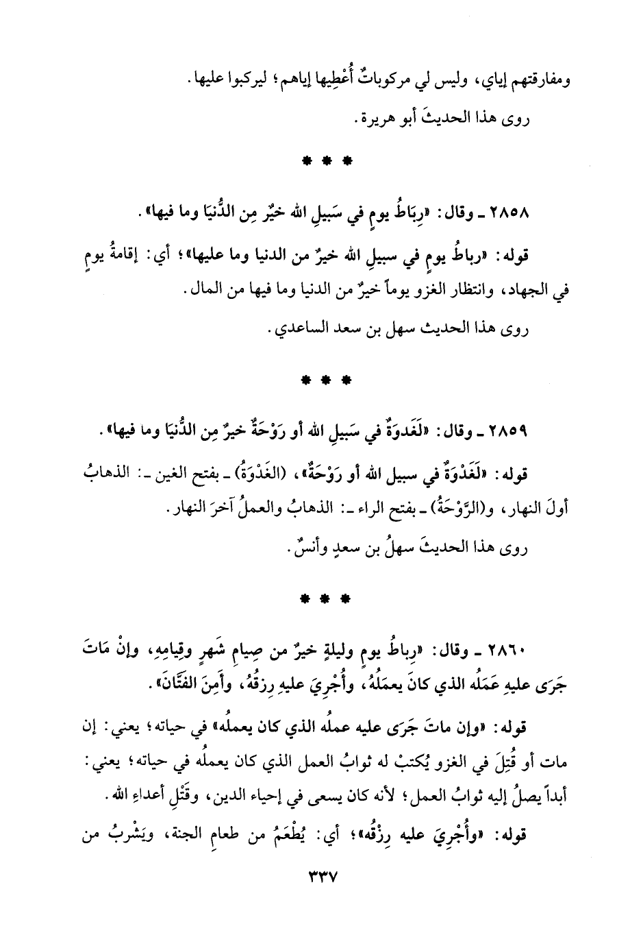 2858 - وقال: "رِبَاطُ يومٍ في سَبيلِ الله خيرٌ مِن الدُّنيَا وما فيها".