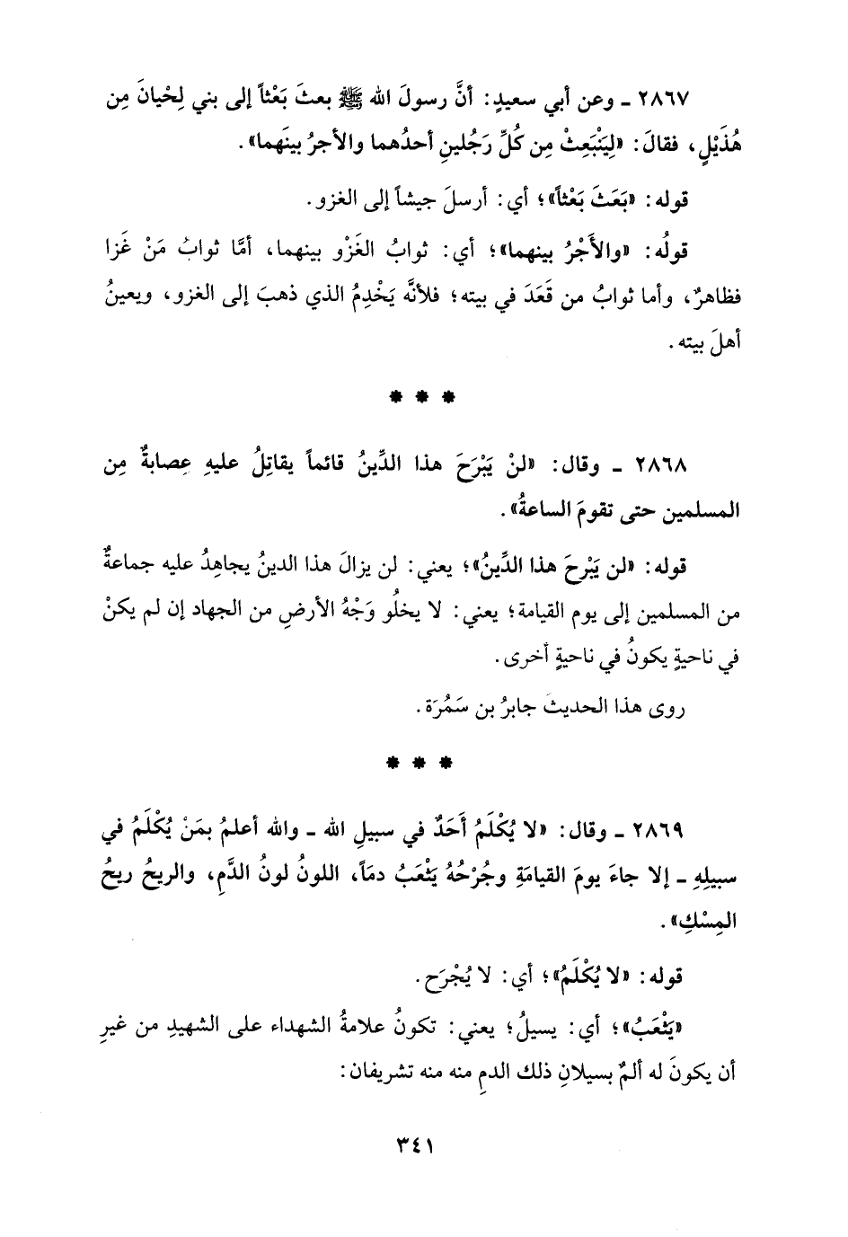 2867 - وعن أبي سعيدٍ: أنَّ رسولَ الله - صلى الله عليه وسلم - بعثَ بَعْثًا إلى بني لِحْيانَ مِن هُذَيْلٍ، فقالَ: "لِيَنْبَعِثْ مِن كُلِّ رَجُلينِ أحدُهما والأجرُ بينَهما".