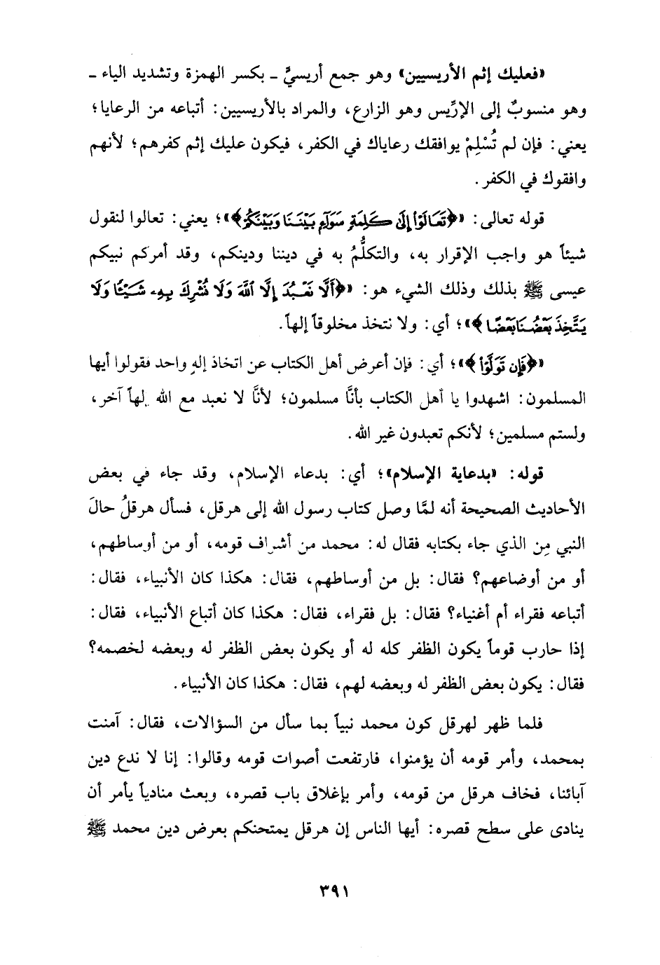 "فعليك إثم الأريسيين" وهو جمع أريسيًّ - بكسر الهمزة وتشديد الياء - وهو منسوبٌ إلى الإرِّيس وهو الزارع، والمراد بالأريسيين: أتباعه من الرعايا؛ يعني: فإن لم تُسْلِمْ يوافقك رعاياك في الكفر، فيكون عليك إثم كفرهم؛ لأنهم وافقوك في الكفر.