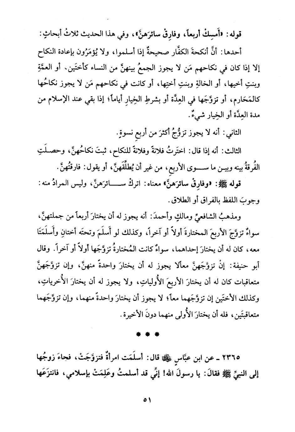 قوله: "أَمسِكْ أربعًا، وفارِقْ سائرَهنَّ"، وفي هذا الحديث ثلاث أبحاثٍ: